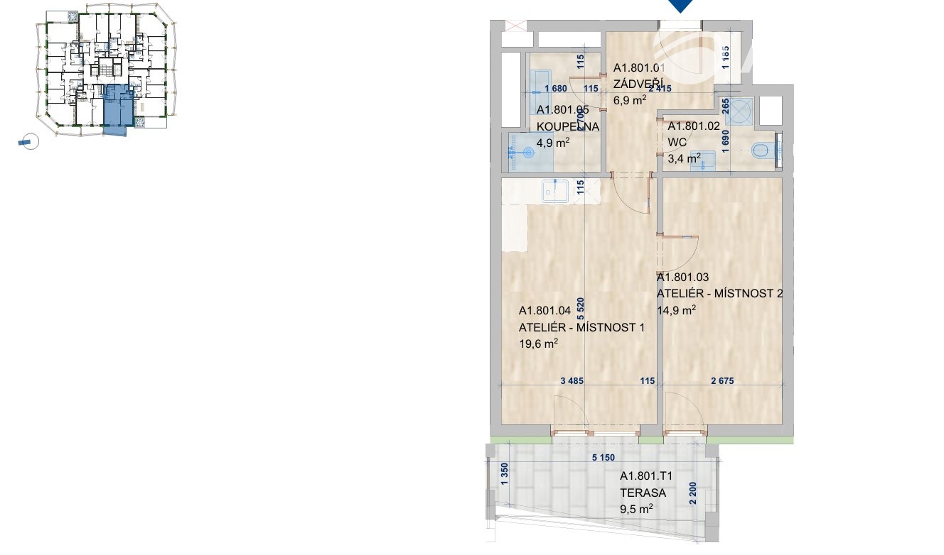UŽITNÁ PLOCHA: 61,3 m² (včetně terasy 9,5 m²)