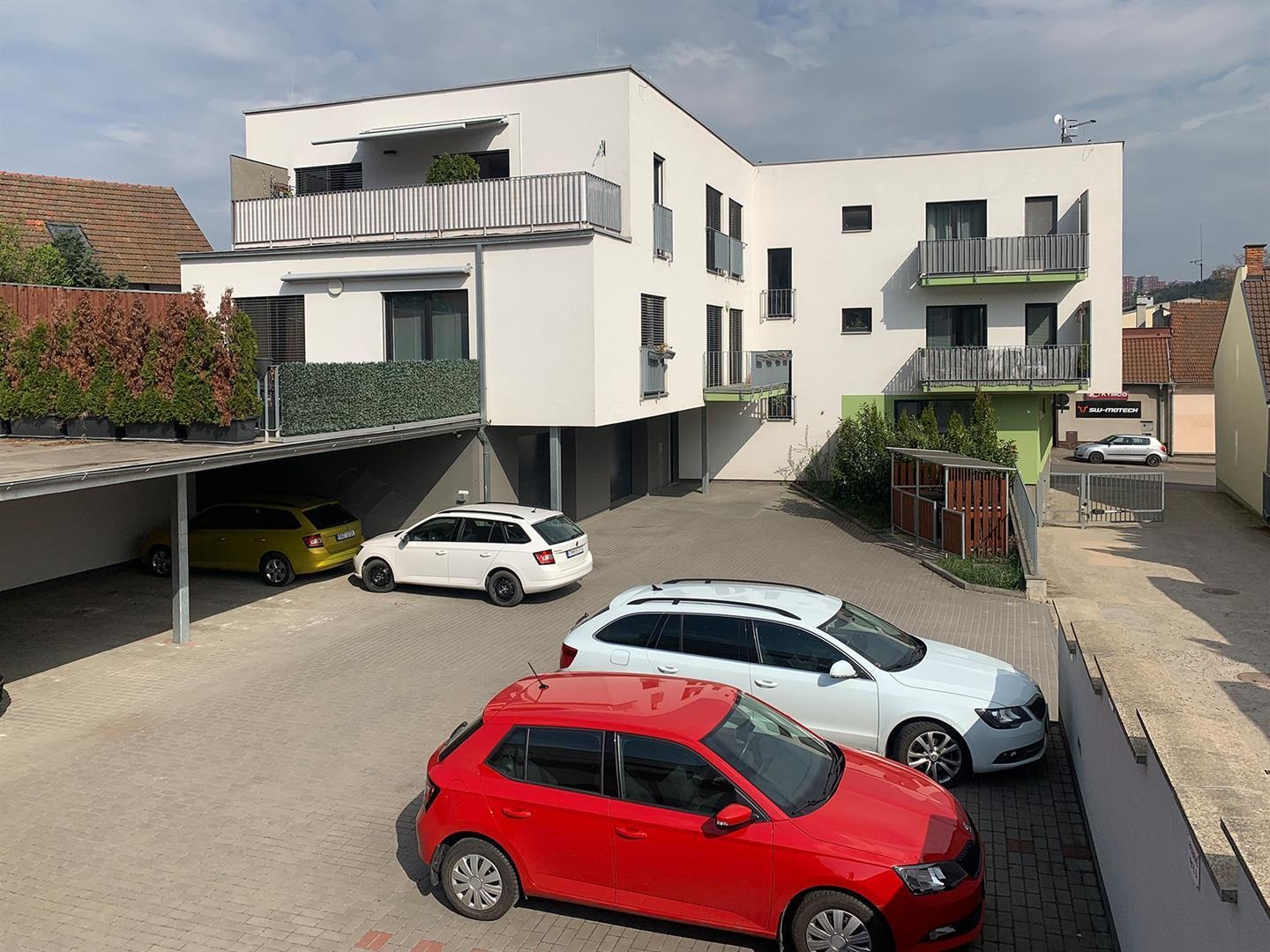 Součásti ceny pronájmu je venkovní parkovací stání, které se nachází ve vnitro-bloku domu.