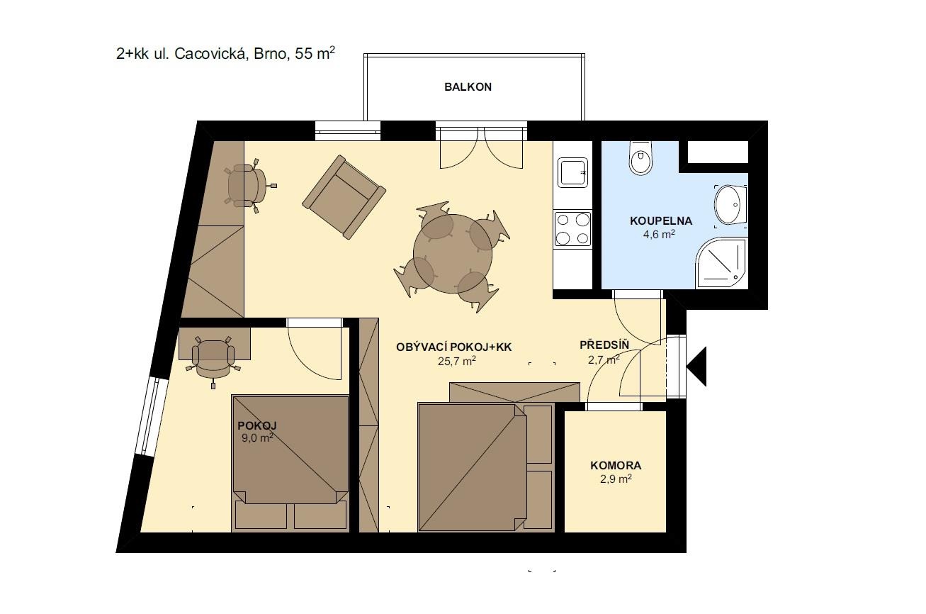 Ve výhradním zastoupení majitele nabízíme k pronájmu slunný byt s úžasnou atmosférou o dispozicích 2 + kk v Brně - Husovicích, na ulici Cacovická. Byt se nachází ve 2. a zároveň posledním patře bytového domu. Na ploše 55m2 najdeme spoustu úložného prostoru, kvalitní nábytek z masivu a klidné bydlení s výhledem do zeleně. V bytě je nainstalována nová klimatizace.