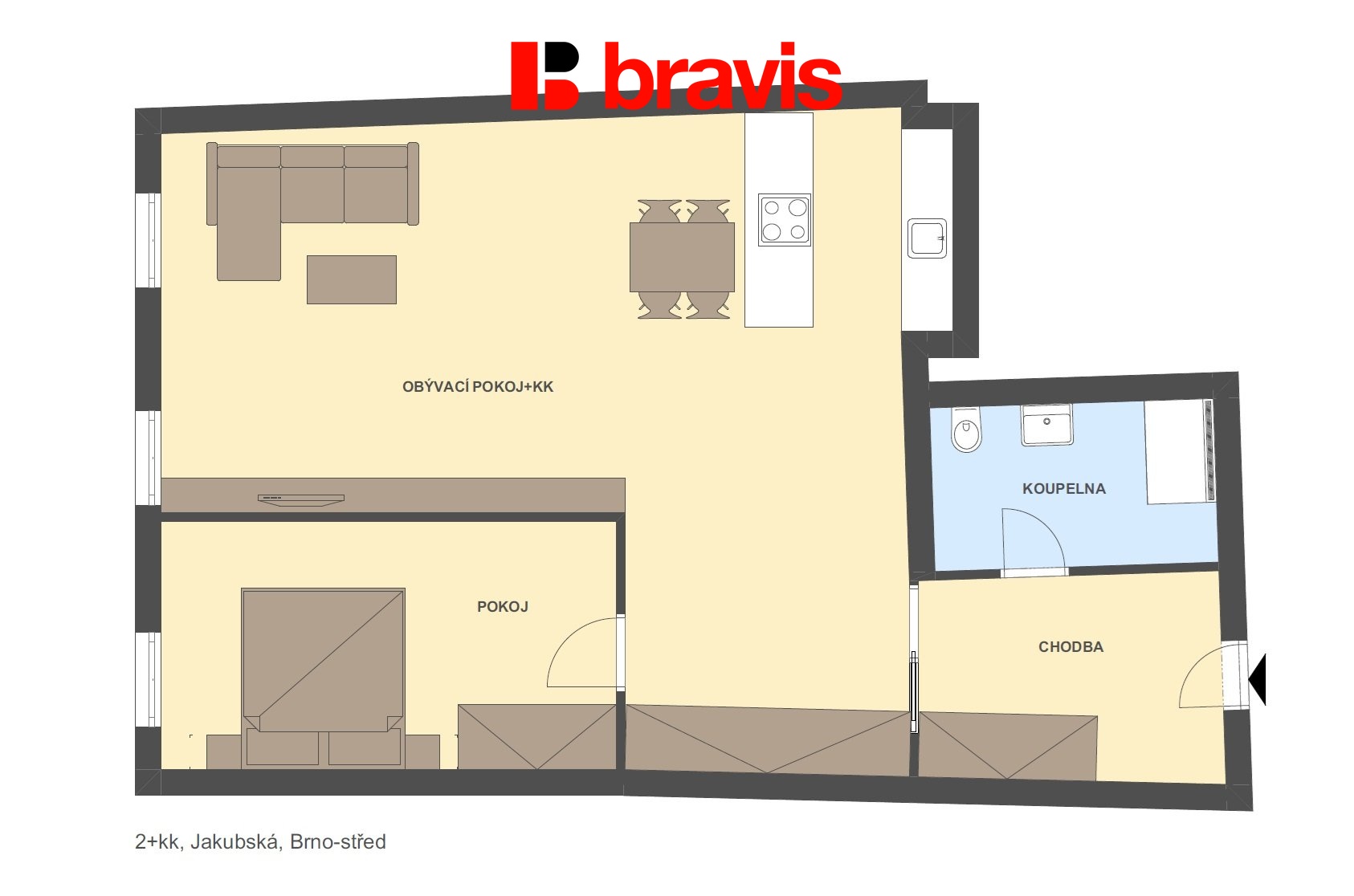 Hledáte moderní a komfortní bydlení v samotném srdci Brna? Máme pro vás jedinečnou nabídku! V zastoupení majitele vám představujeme k dlouhodobému pronájmu nadstandardní byt o dispozici 2+kk, který se nachází na prestižní adrese na ulici Jakubská, v blízkosti ulice Česká. Tento byt, o rozloze 79 m², je ideální volbou pro ty, kdo si přejí bydlet ve vysokém standardu přímo v centru města.