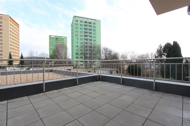 Částečně zařízený a prostorný byt o velikosti 57,3 m2 s terasou (15,19 m2) se nachází v 1. patře novostavby bez výtahu.