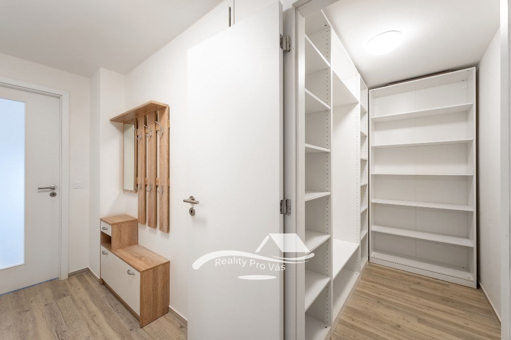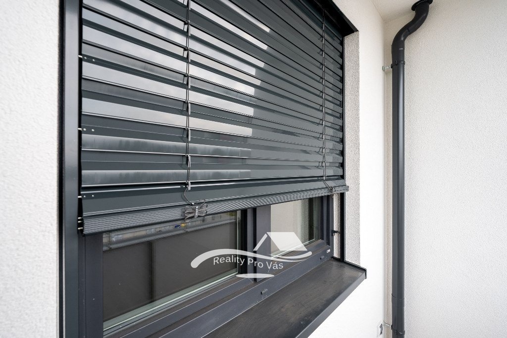 Nová kuchyňská linka, sporák (indukce), myčka v šatně je vestavěná skříň, v předsíni šatní stěna, venkovní žaluzie.