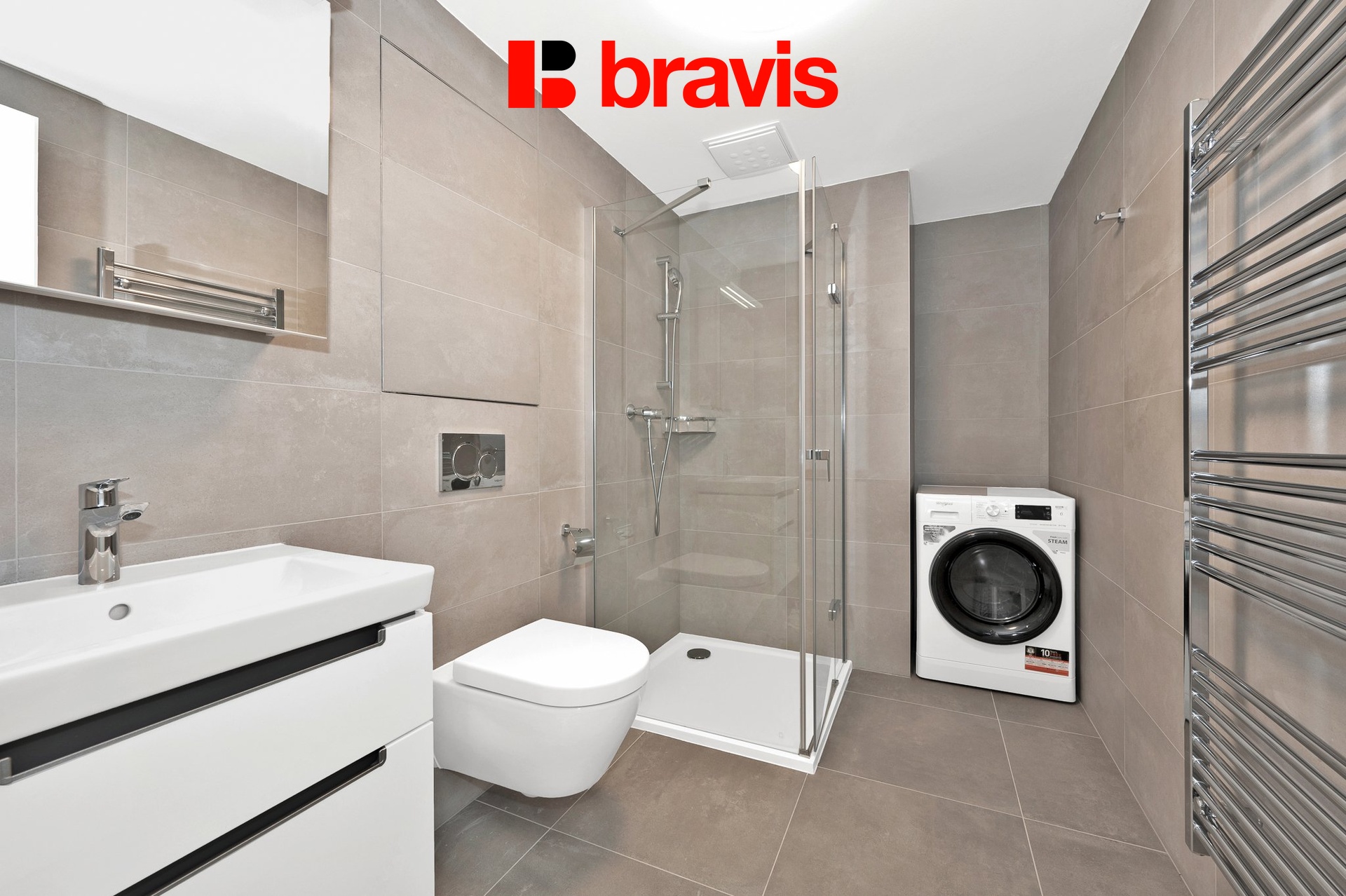 K dispozici je také pračka se sušičkou, kterou oceníte zejména v hektických dnech, kdy potřebujete rychle vyprat a vysušit prádlo.