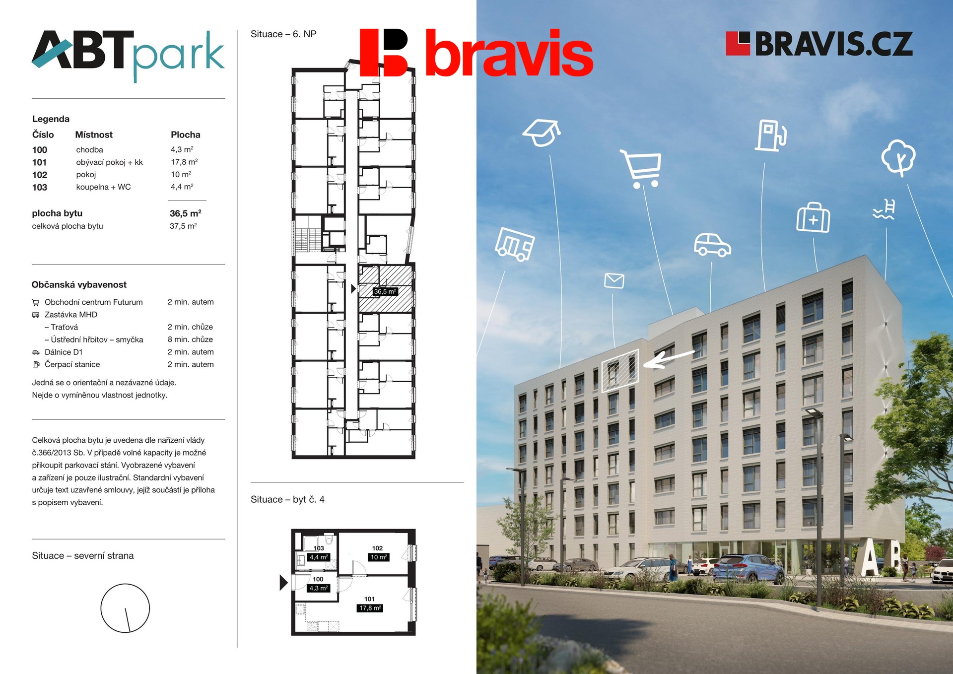 Jednotka se nachází v 6. patře, nového bytového domu ABT Park s výtahem.