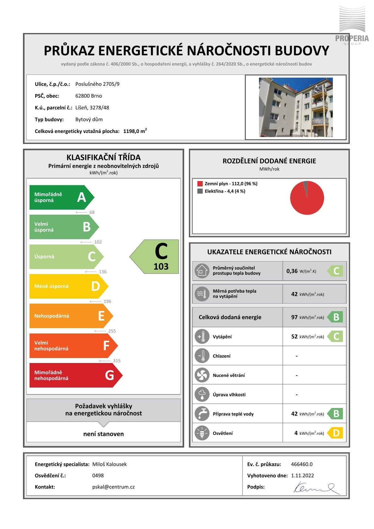 Energetická náročnost budovy: C (nízké náklady na bydlení)