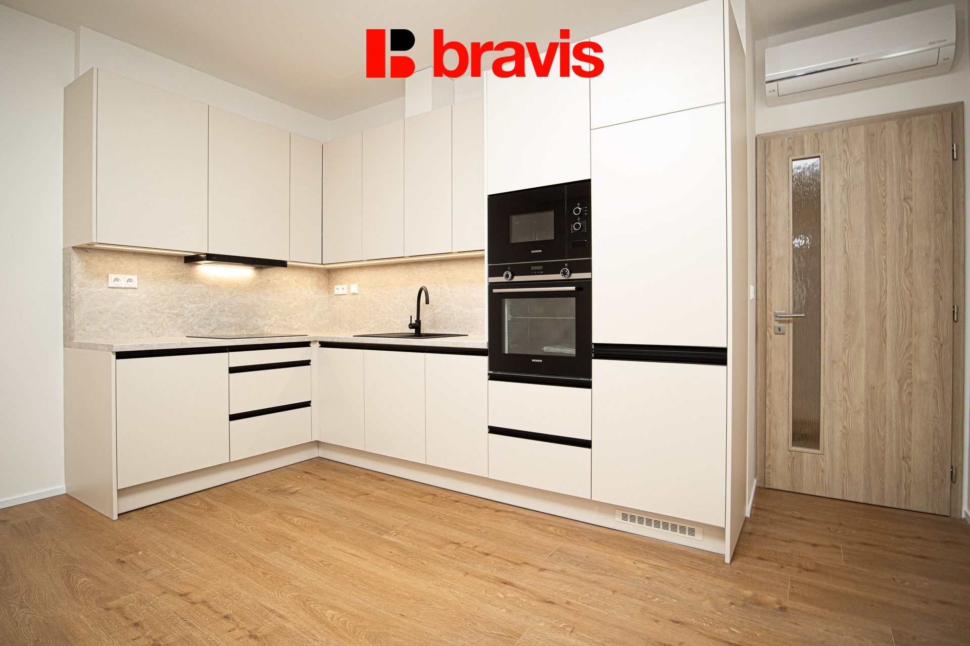 Mezi hlavní benefity bytu patří možnost být prvním nájemníkem, klimatizace, šatna, sklep a zajištěné garážové stání.