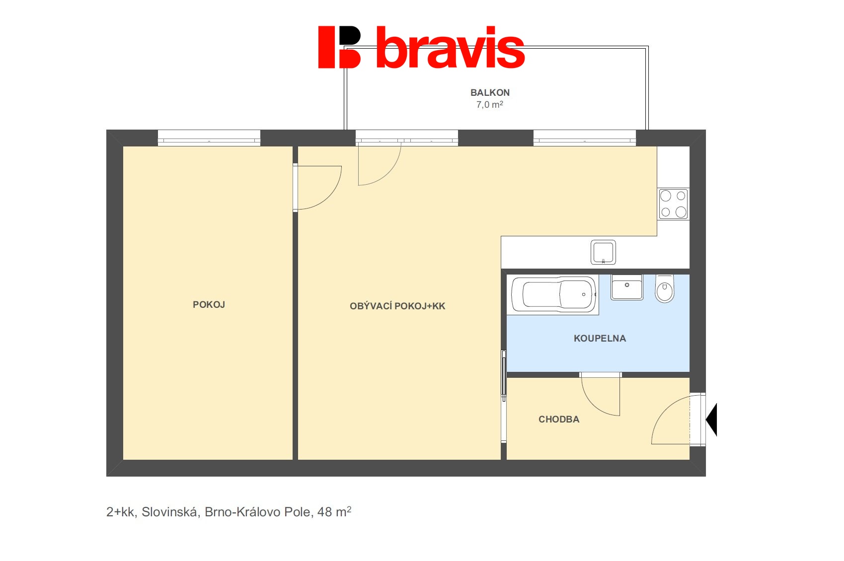 Ve výhradním zastoupení majitele nabízíme k pronájmu byt o dispozici 2+kk s balkonem, možností parkování ve vnitrobloku a sklepem v klidné lokalitě s výhledem do zeleně v Brně - Králově Poli na ulici Slovinská.