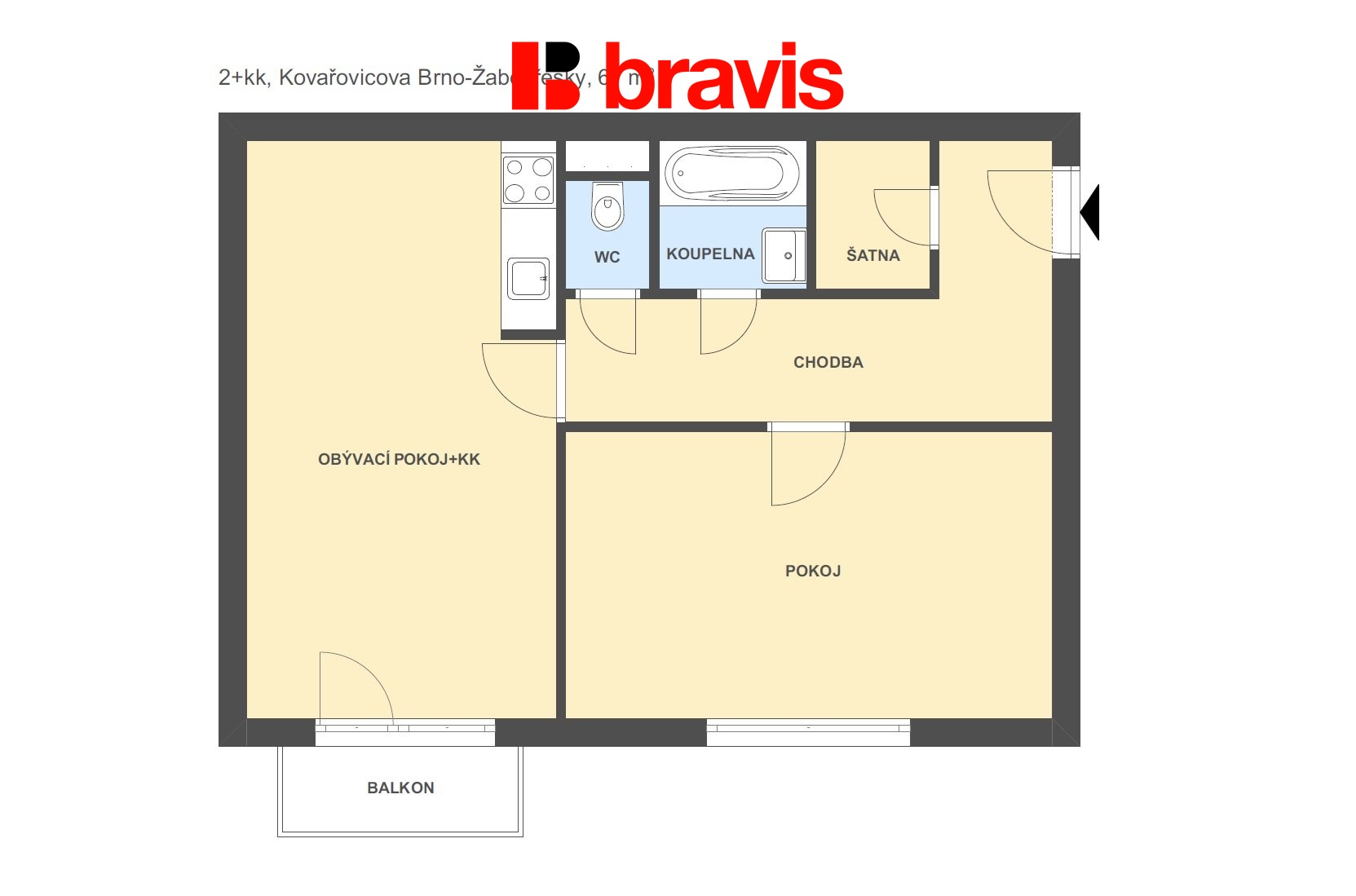 Ve výhradním zastoupení majitele nabízíme dlouhodobý pronájem prostorného bytu o dispozici 2+kk v městské části Brno - Žabovřesky na ulici Kovařicova.