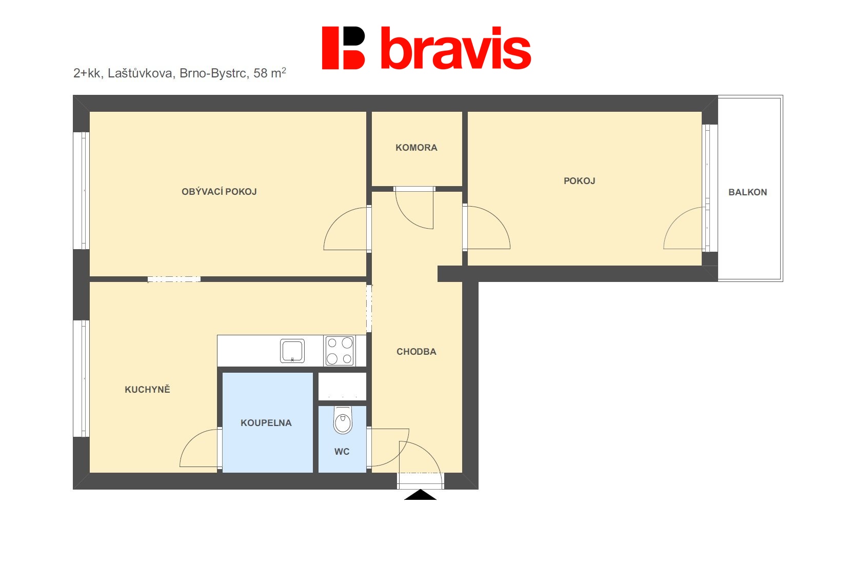 Ve výhradním zastoupení majitele nabízíme k pronájmu částečně zařízený byt o velikosti 2+kk na ulici Laštůvkova v Brně - Bystrci.