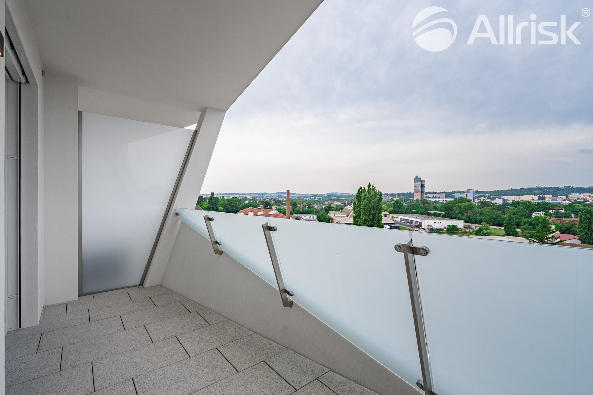 Nabízím k pronájmu moderní byt 2+kk o celkové výměře 48,1 m² s terasou 9,9 m², situovaný ve 8. nadzemním podlaží novostavby Allrisk MERIDIEM na ulici Komárovská. Jednotka je ideální pro kombinaci bydlení a podnikání a její dominantou je úchvatný výhled na Špilberk a Petrov, který dodává prostoru jedinečnou atmosféru a pocit vzdušnosti.