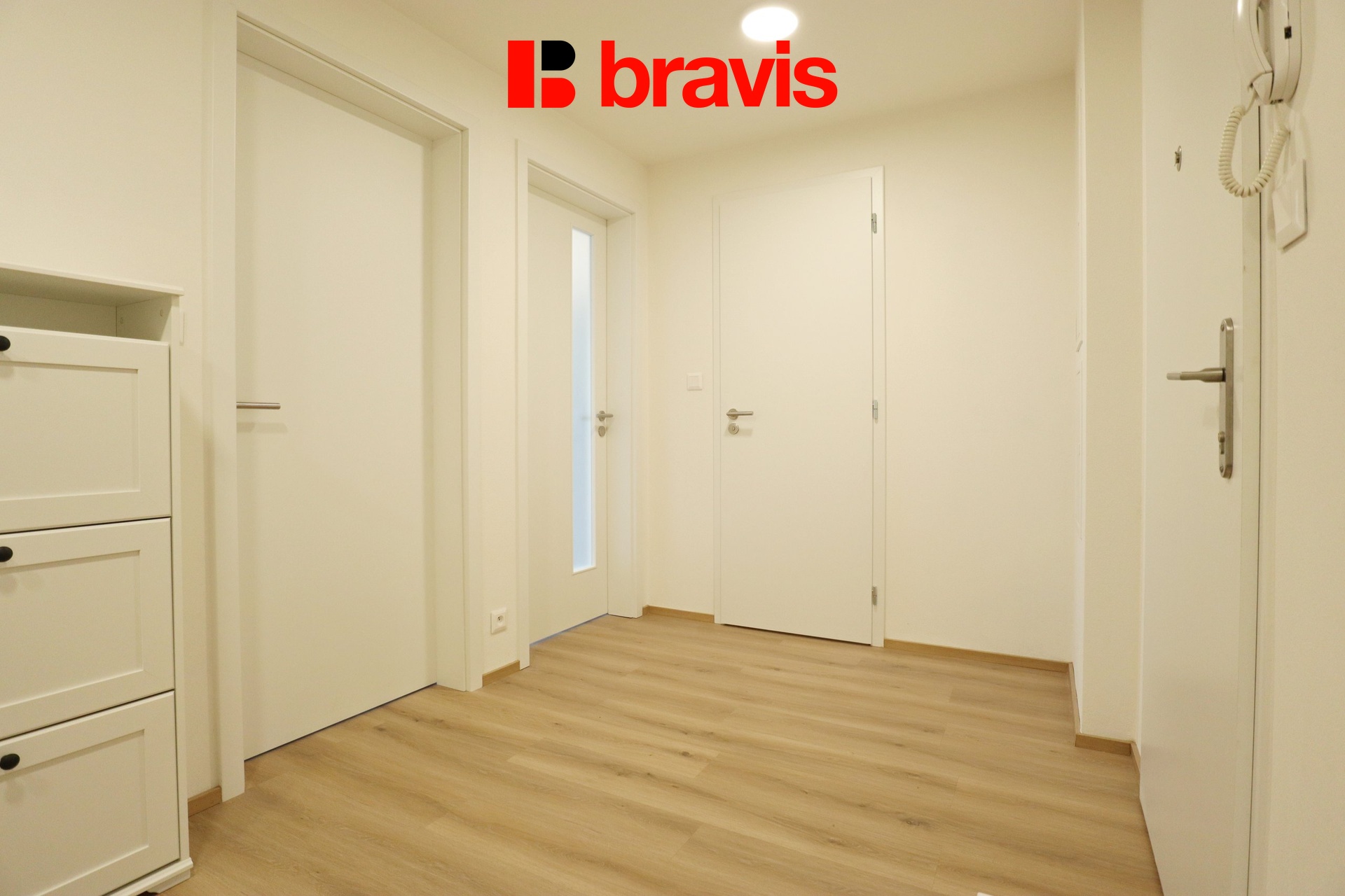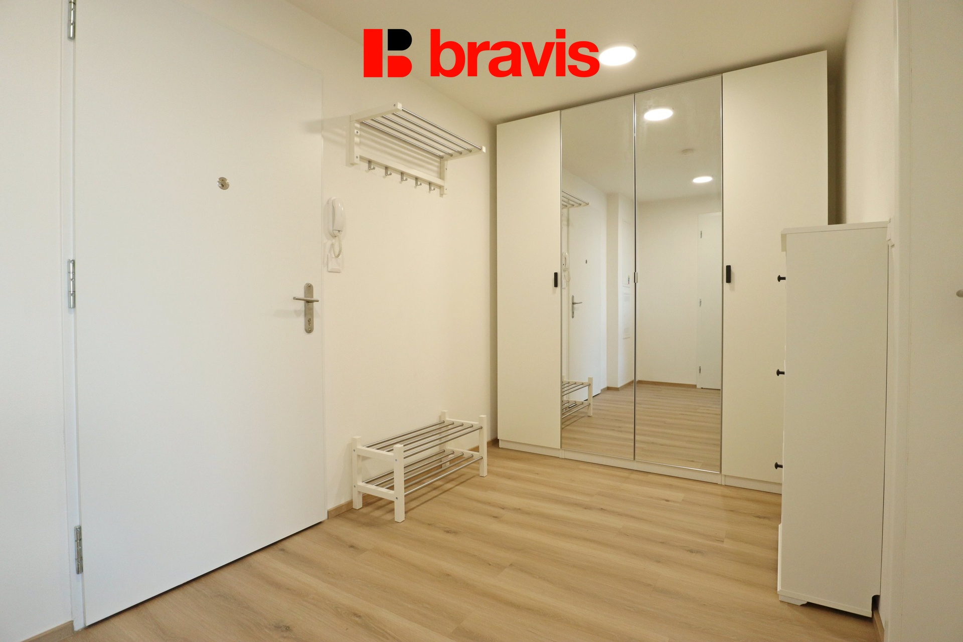 V chodbě se nachází vestavná skříň, botník a věšák.