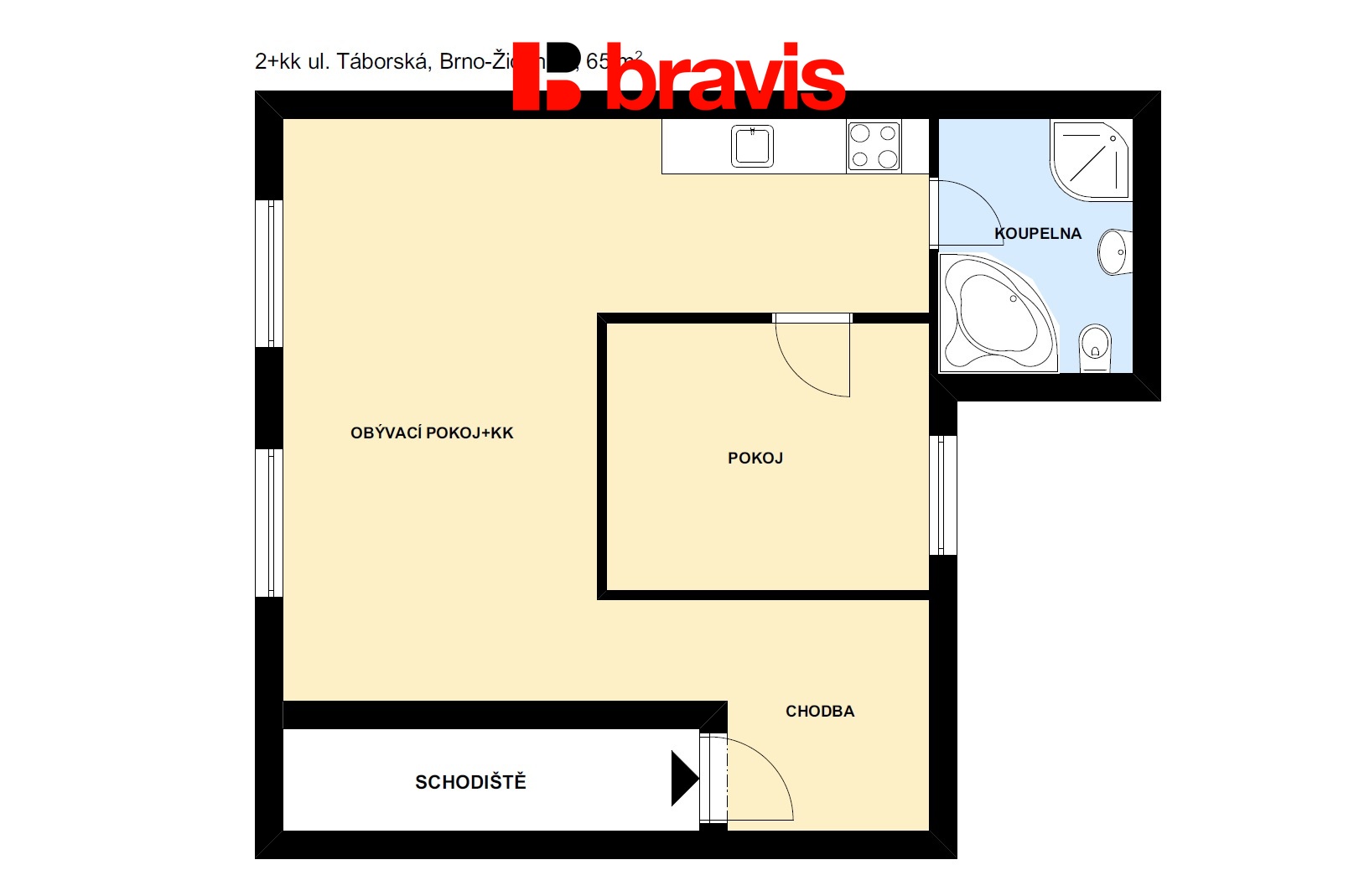 Ve výhradním zastoupení majitele nabízíme k dlouhodobému pronájmu byt o dispozici 2+kk na ulici Táborská v Brně Židenicích.