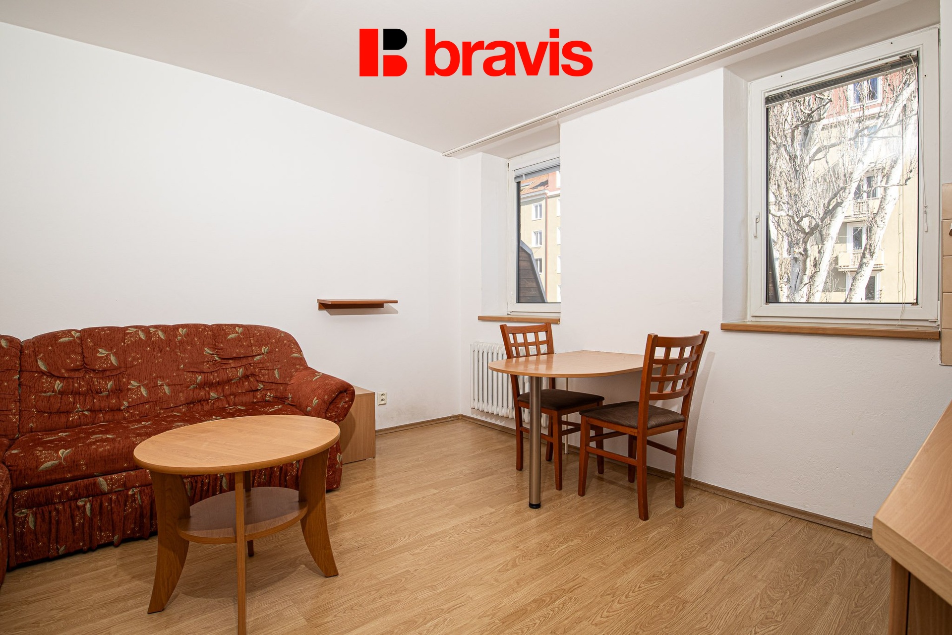 Dispozice bytu se skládá z předsíně s vestavěnými skříněmi, pokoje s kuchyňským koutem, samostatné ložnice a koupelny. Byt je kompletně vybaven nábytkem i základním příslušenstvím, takže nabízí možnost okamžitého nastěhování bez nutnosti dalších investic.