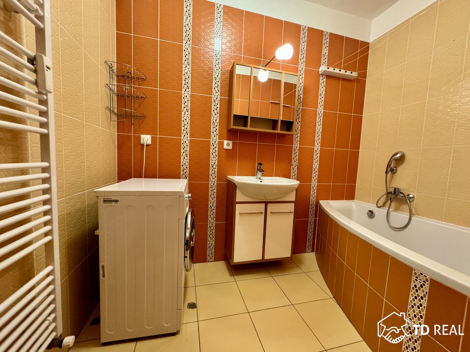 Byt je vybaven kuchyňskou linkou, lednicí, myčkou, MW troubou, sklokeramickou deskou, dále je k dispozici trouba, jídelní stůl, židle, TV skříň, TV, pračka, vest. skříň, aj.