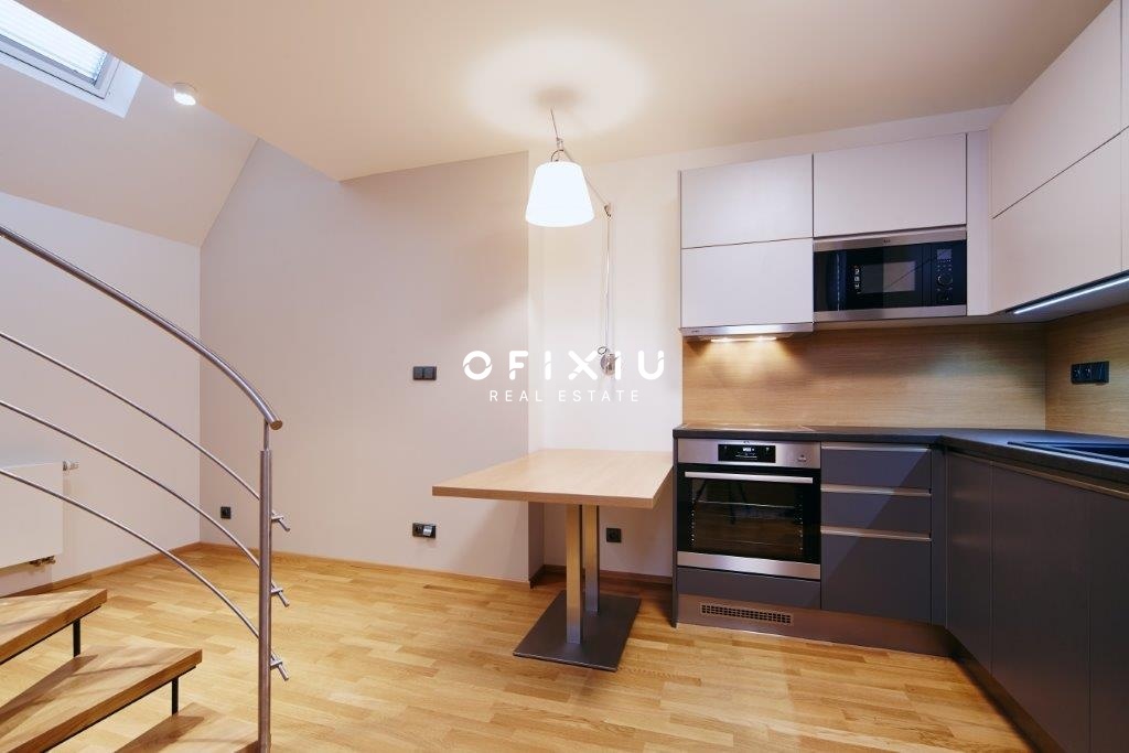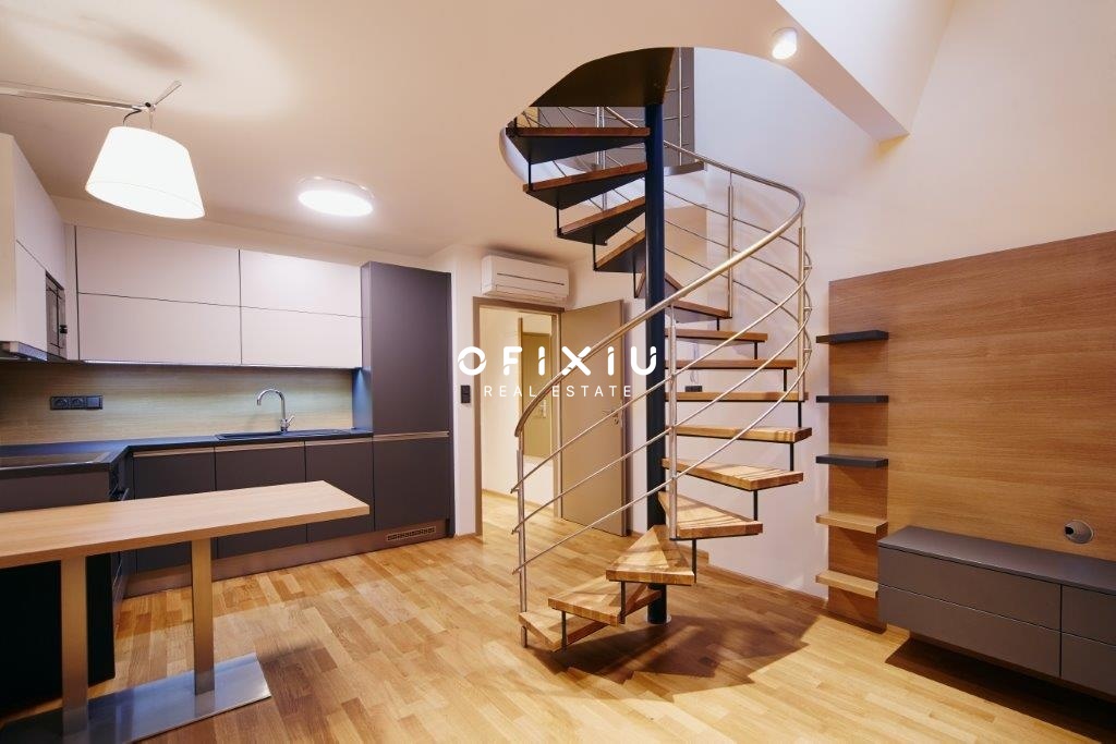 Jedná se o moderní mezonetový byt v šestém nadzemním podlaží historické budovy v centru Brna.