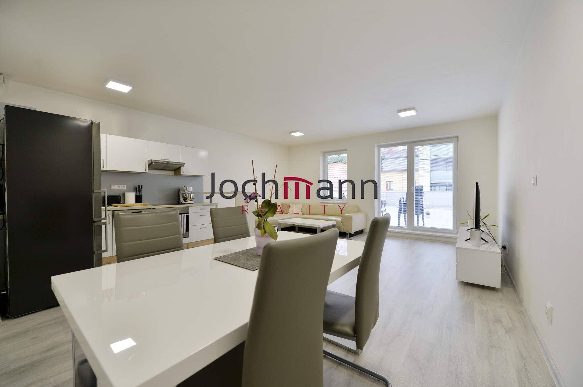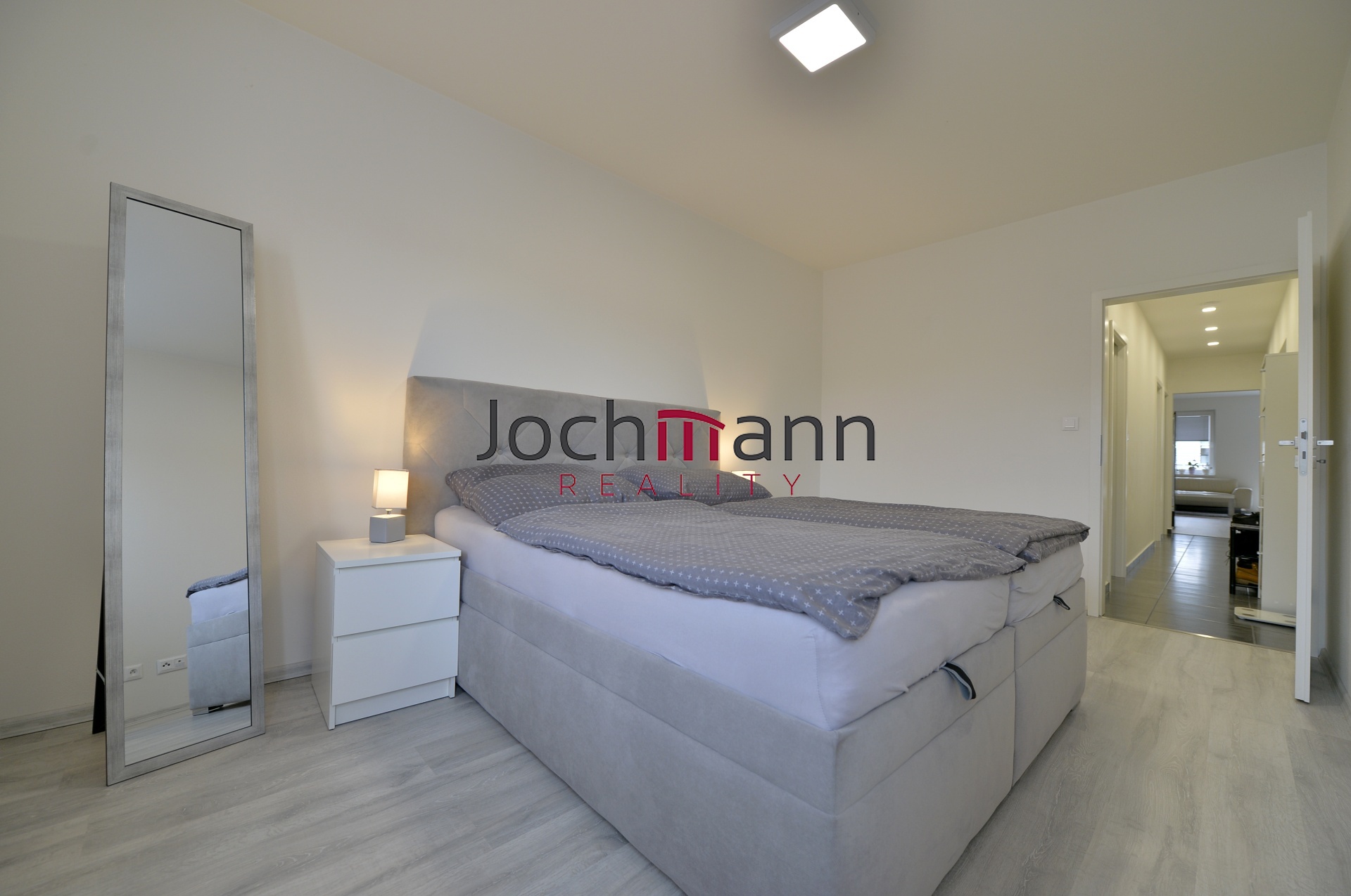 Dispozice bytu nabízí prostorný obývací pokoj s plně vybaveným kuchyňským koutem. Kuchyňská linka disponuje všemi potřebnými spotřebiči a severně orientovanou ložnici. Komfort bydlení doplňuje velkorysá vstupní hala, samostatná šatna s vestavěnou skříní a moderní koupelna s prostorným sprchovým koutem. Praktickým prvkem je druhá, oddělená toaleta s vyhrazeným místem pro pračku a sušičku.