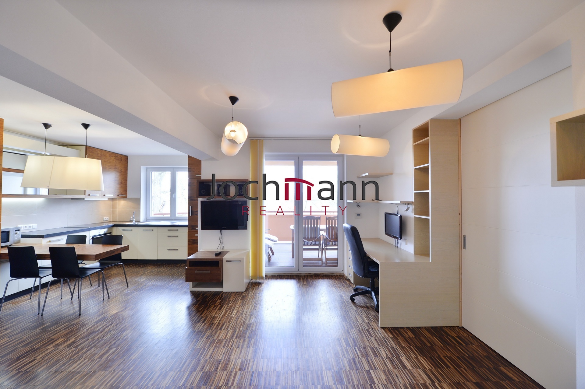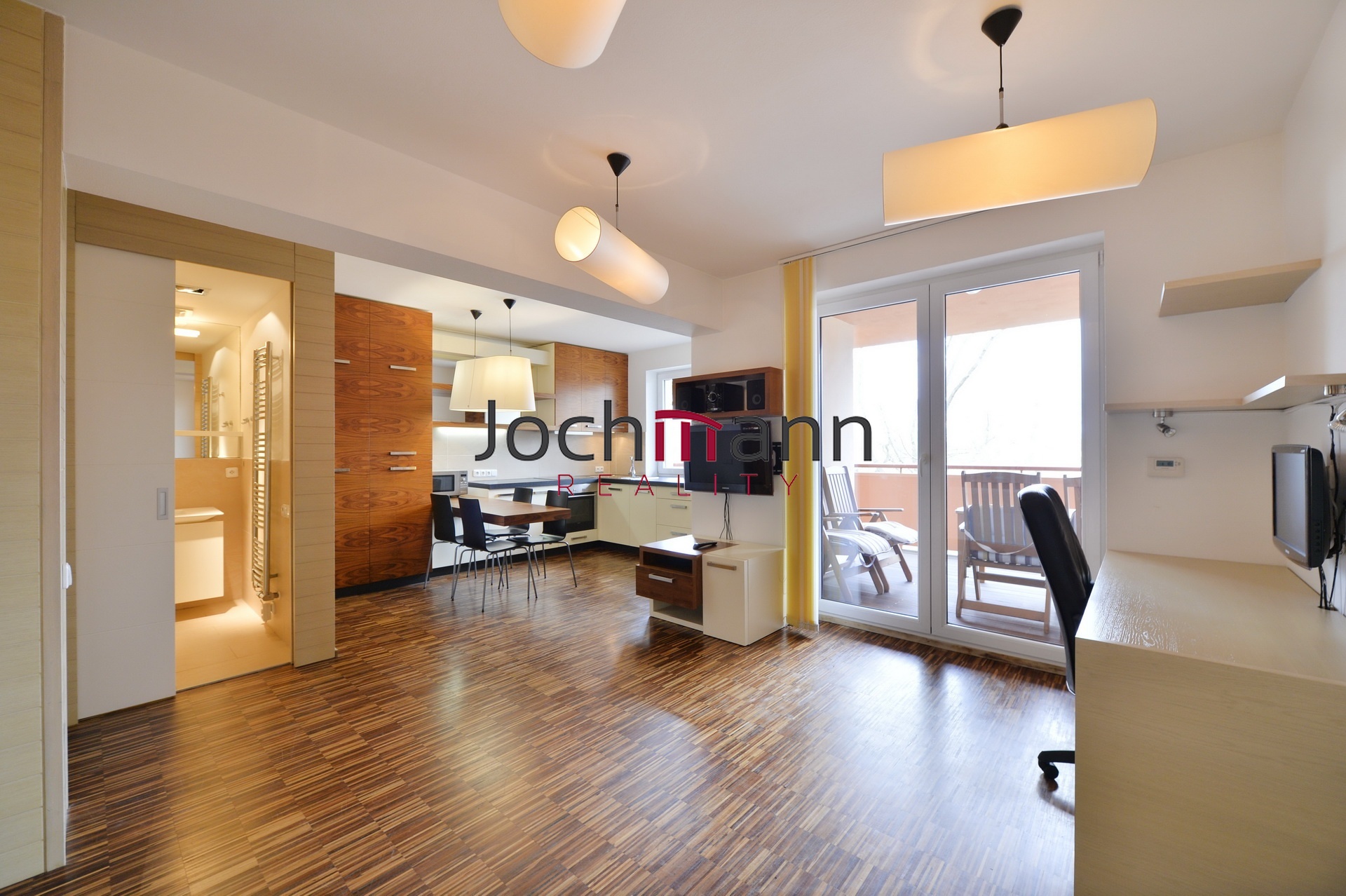 Nadstandardní vybavený byt je situován v bytovém domě s výtahem a možností parkování v klidné lokalitě Plavská, poblíž Malého jezu. Byt je kompletně orientovaný směrem k řece a jeho dispozice nabízí prostornou vstupní chodbu, centrální obytnou místnost s kuchyňským koutem a jídelnou, obývákem a výstupem na částečně zakrytou terasu, ložnici se vstupem do velkorysé šatny a výstupem na terasu, samostatnou toaletu a koupelnu se sprchovým koutem. V bytě je umístěno mnoho nadstandardních, na míru vyrobených prvků (posuvné dveře, dělící stěny, úložné prostory, svítidla apod.) K výbavě bytu patří mimo jiné stylová, kompletně vybavená kuchyň včetně myčky nádobí, lednice s mrazákem, horkovzdušné trouby, sklokeramické varné desky a mikrovlnky. Součástí vybavení je i jídelní stůl se židlemi, LCD TV, manželská postel vč. matrací, vestavěné skříně, pračka, sušička apod. Součástí pronájmu je možnost využití kolárny i sklepa. V bezprostřední blízkosti domu je umístěna zastávka MHD a cyklostezka kolem řeky Malše. Jde o ideální bydlení v přírodě a zároveň v docházkové vzdálenosti centra. K dispozici od 1.3.2026.