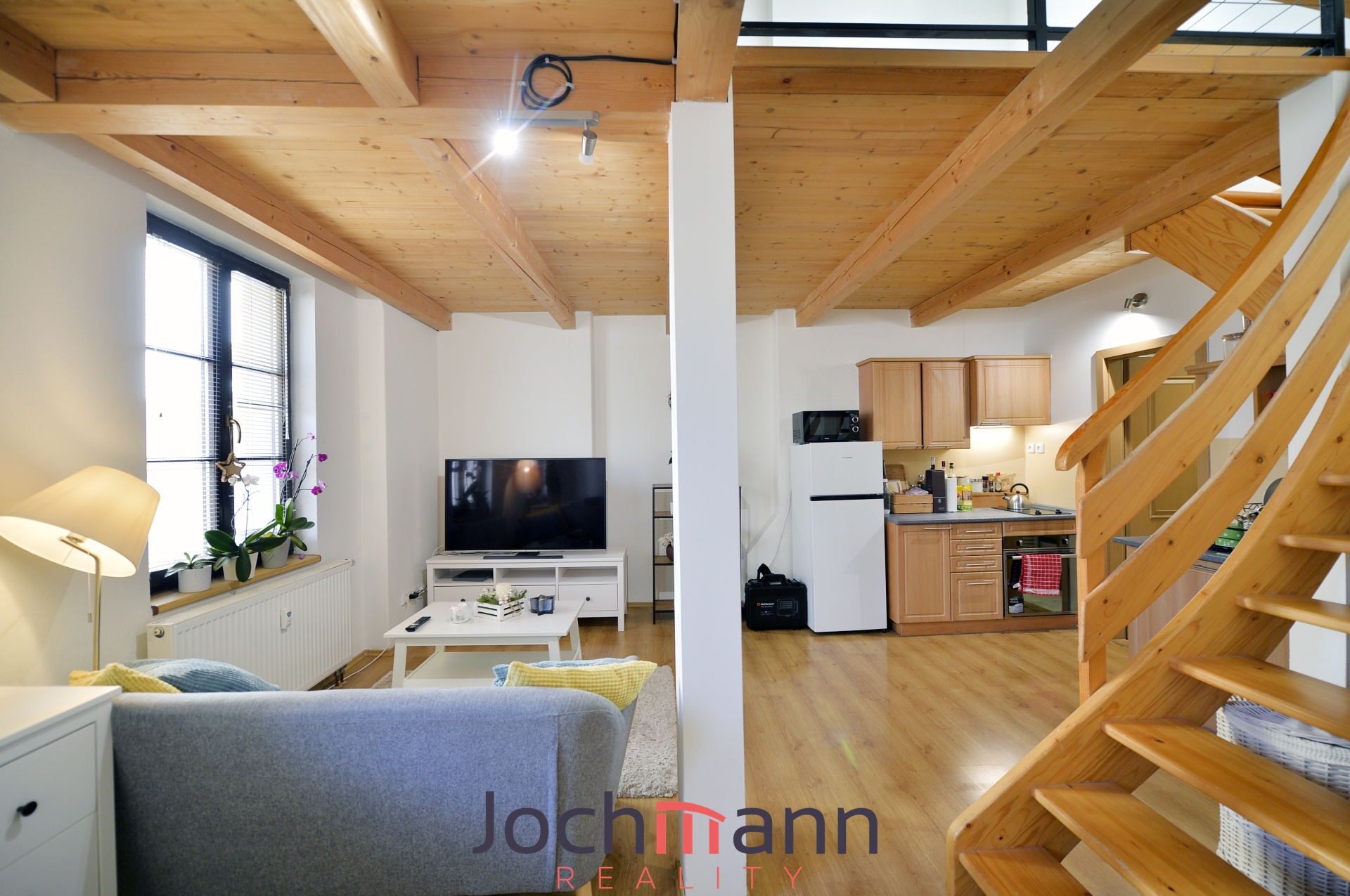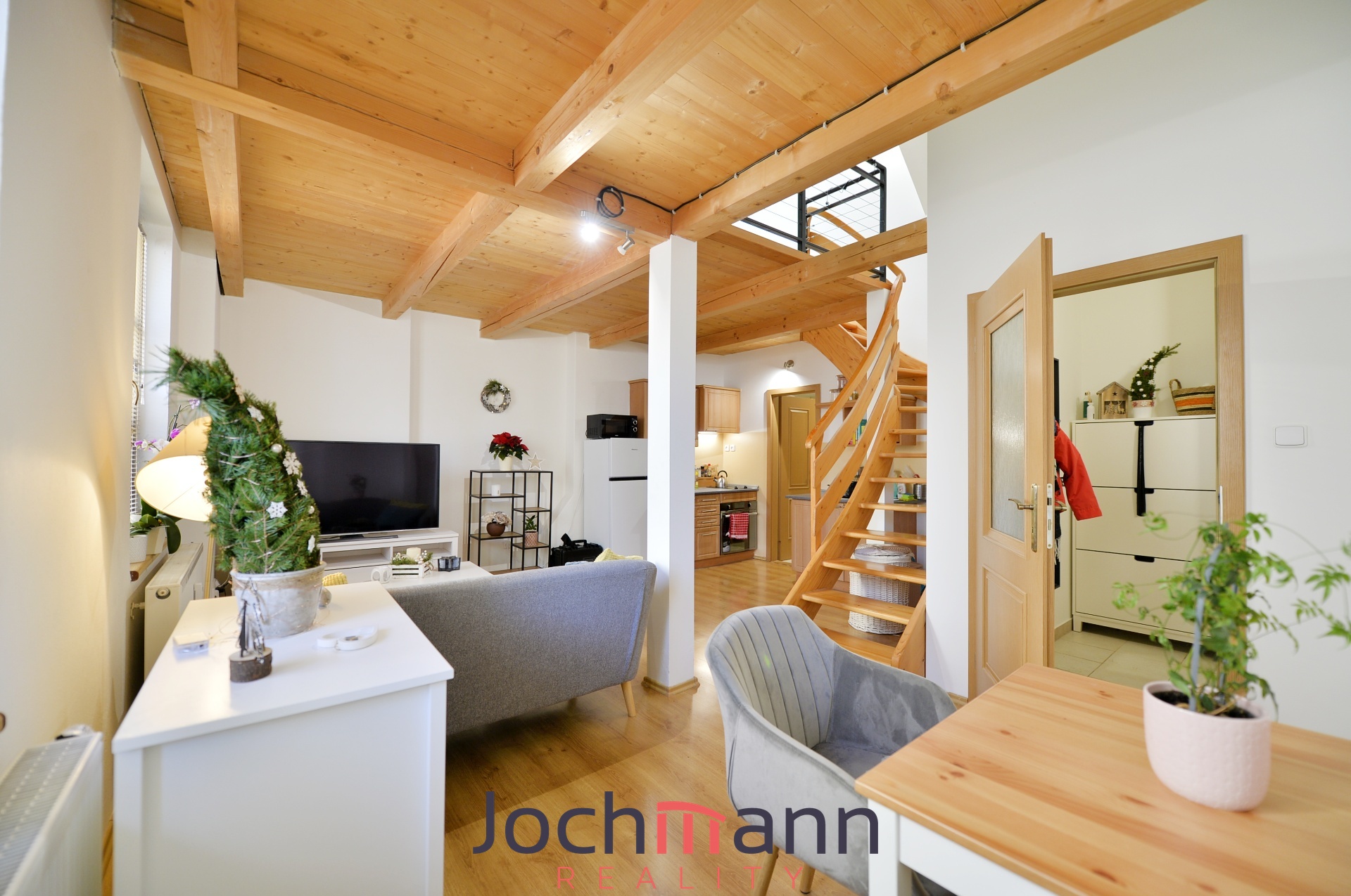 V samotném centru Českých Budějovic, jen pár minut chůze od hlavního náměstí, se v historickém domě nachází světlý mezonetový byt o dispozici 2+kk.