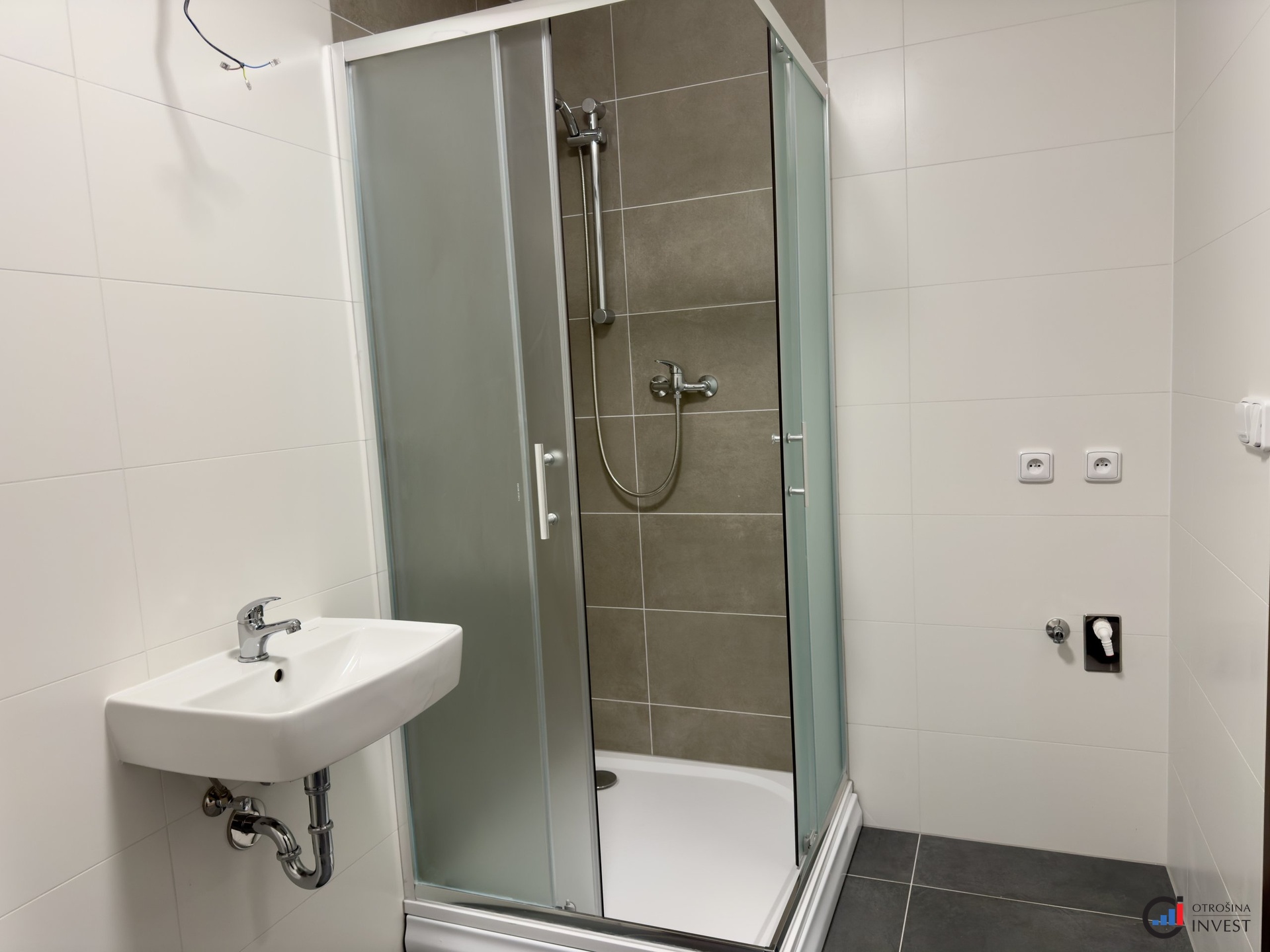 > v obytných místnostech je kvalitní vinylová podlaha, v koupelně dlažba.