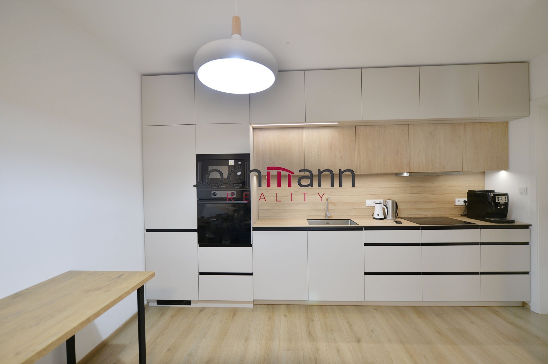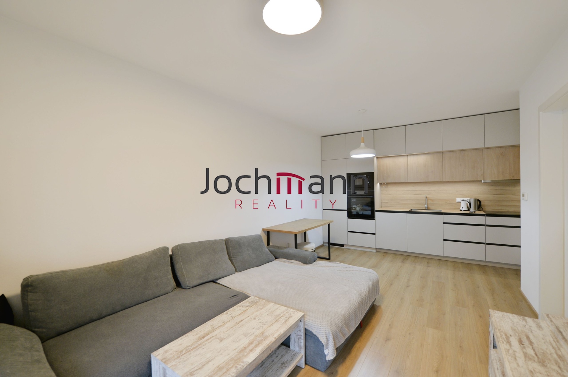 Byt je vybaven moderní kuchyňskou linkou včetně vestavných spotřebičů (indukční varná deska, trouba, digestoř, mikrovlnýma, myčka, lednice s mrazákem), stropními svítidly a prostornou vestavnou skříní v chodbě. Po domluvě je možné odkoupit nábytek zachycený na fotografiích.