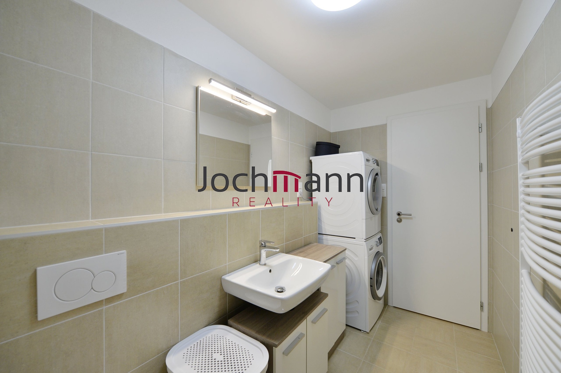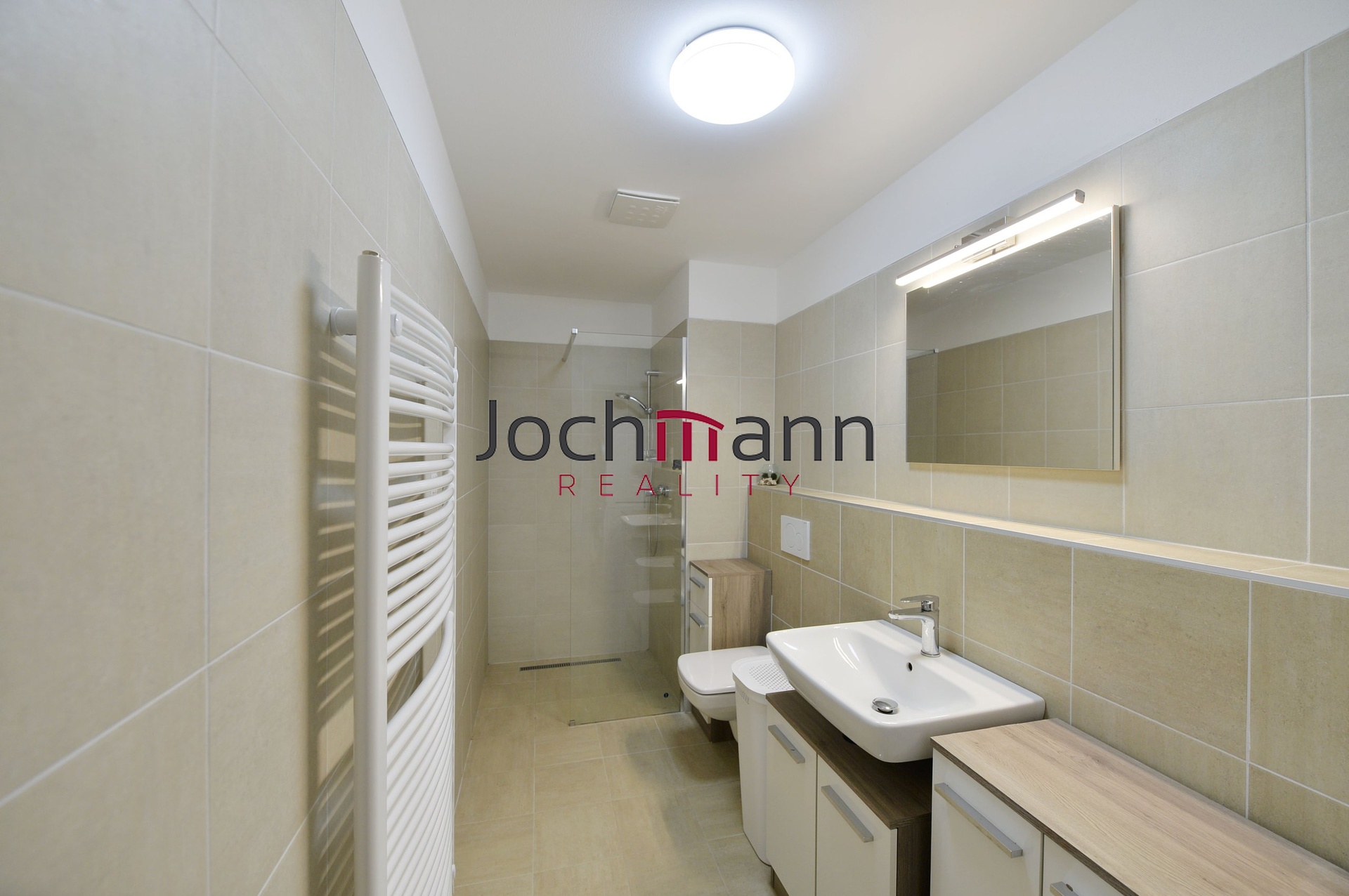 Dispozice bytu nabízí vstupní chodbu doplněnou o vestavnou šatní skříň, koupelnu se sprchovým koutem, toaletou a místem pro pračku se sušičkou, hlavní obytnou místnost, ze které je možný výstup na terasu a malou zahrádku, která ideálně poslouží k odpočinku a samostatnou ložnici, ze které je také možný výstup ven.