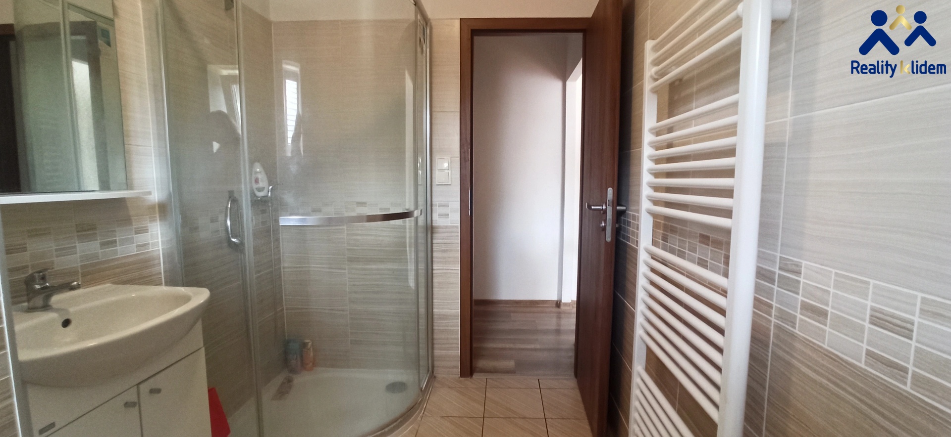 V prostorném obytném pokoji se nachází kuchyňská linka s varnou deskou, elektrickou troubou a digestoří. Další pokoj je vhodný k ložnici. Byt má krásnou koupelnu se sprchovým koutem, umyvadlem s koupelnovou skříňkou a zrcadlem, která je společná s WC.