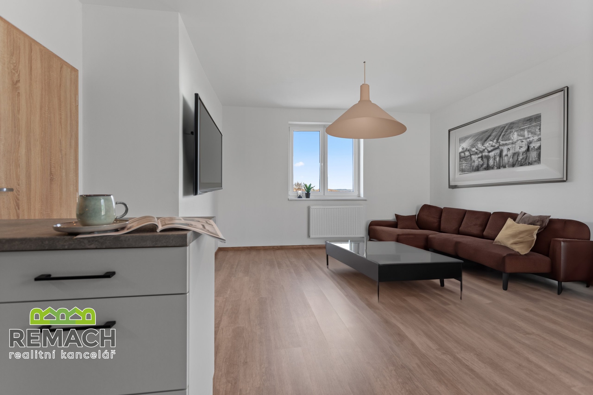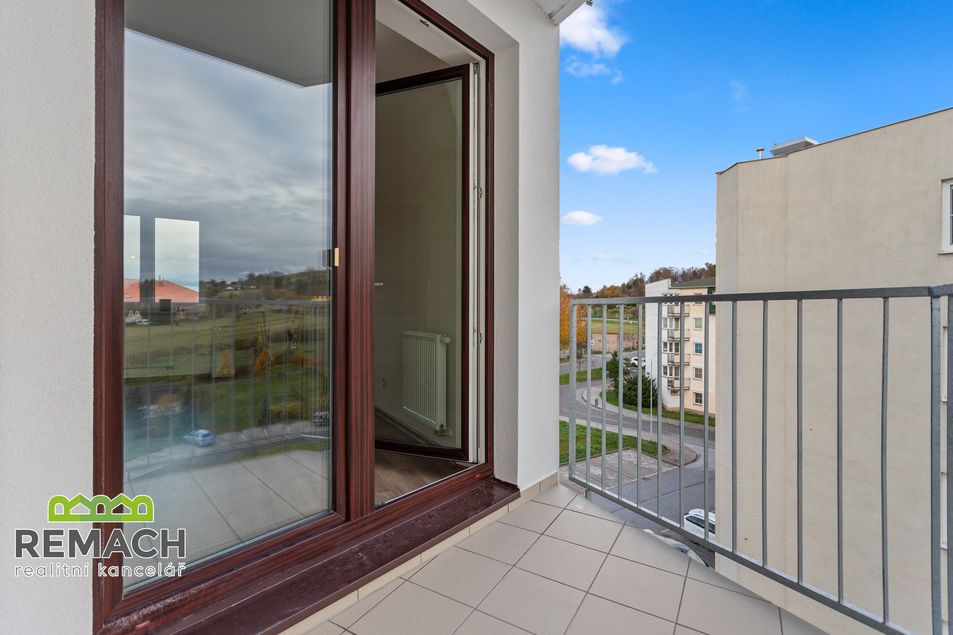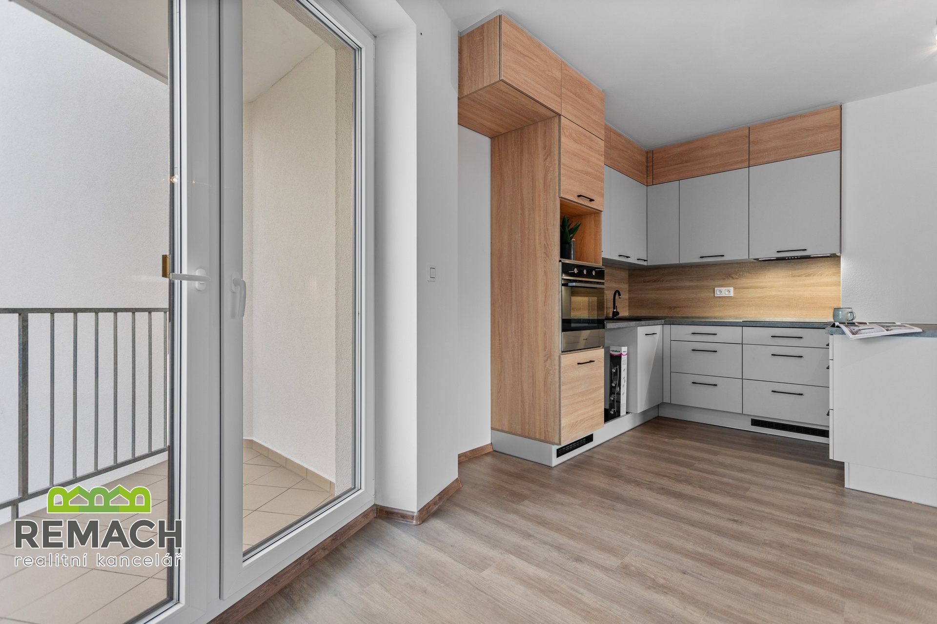 Moderní byt 2+kk v novostavbě s výhledem do zeleně, se vstupem na balkon z obývacího pokoje s možností pronájmu vlastní garáže od 1.2.2026