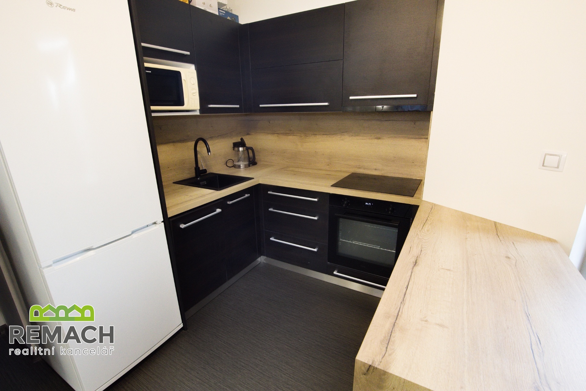V bytě je vybudovaná nová kuchyňská linka se spotřebiči, položená nová podlahová krytina, nové WC a koupelna se sprchovým koutem, ložnicí a prostornou vstupní chodbou.
