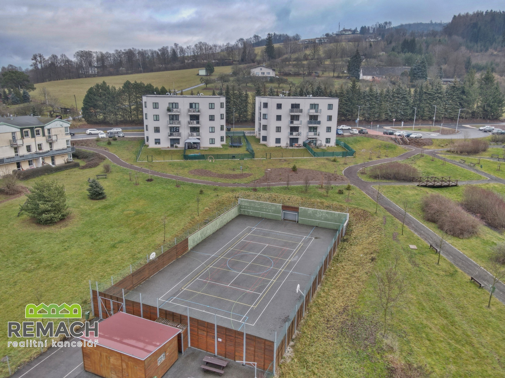 Bytová jednotka se nachází v klidné lokalitě se spoustou zeleně v okolí, v nově vybudovaném bytovém domě, ve druhém patře, v blízkosti se nachází dětské a multifunkční hřiště, veškerá občanská vybavenost, MHD, škola, školka, potraviny, nemocnice.