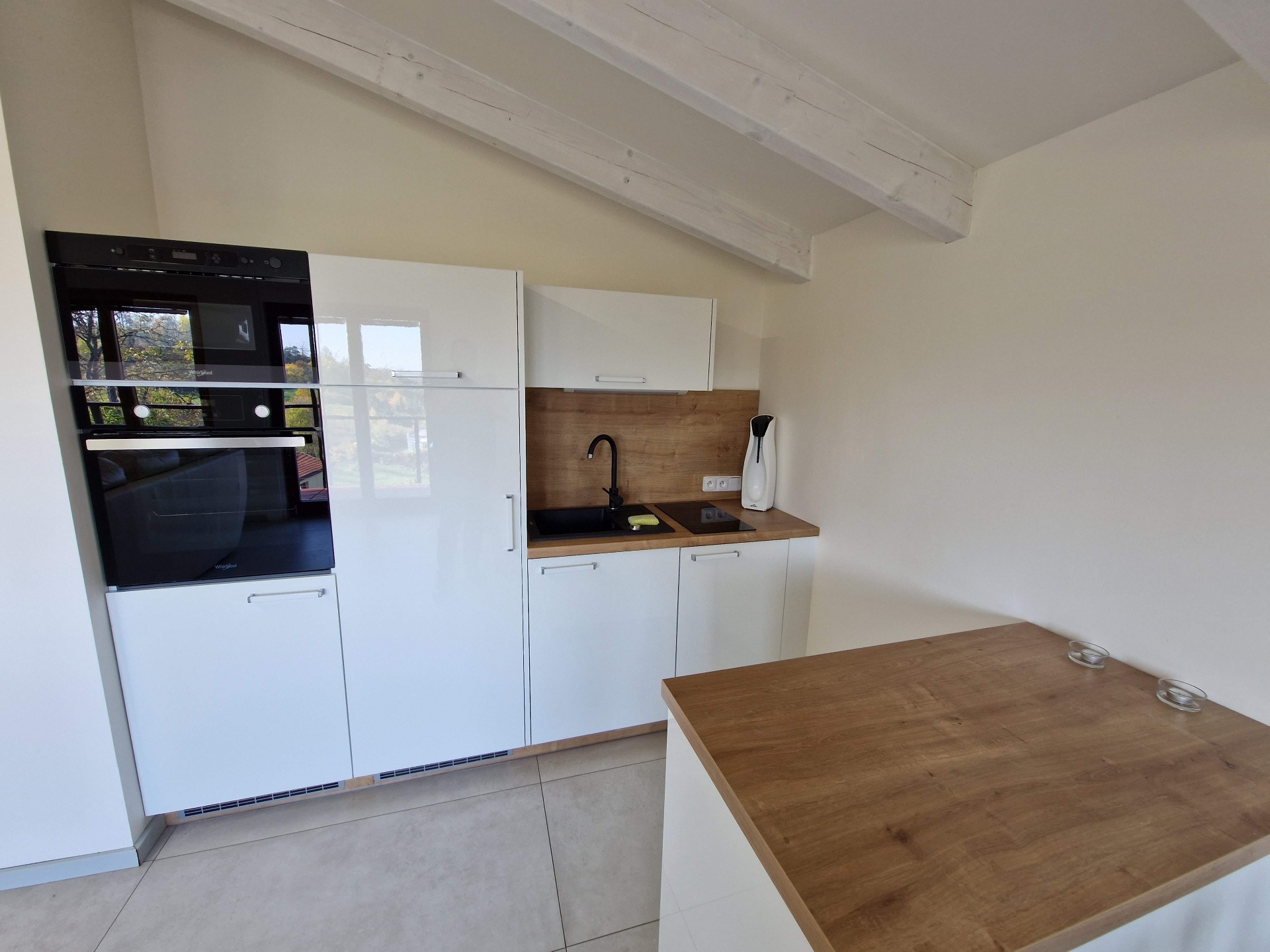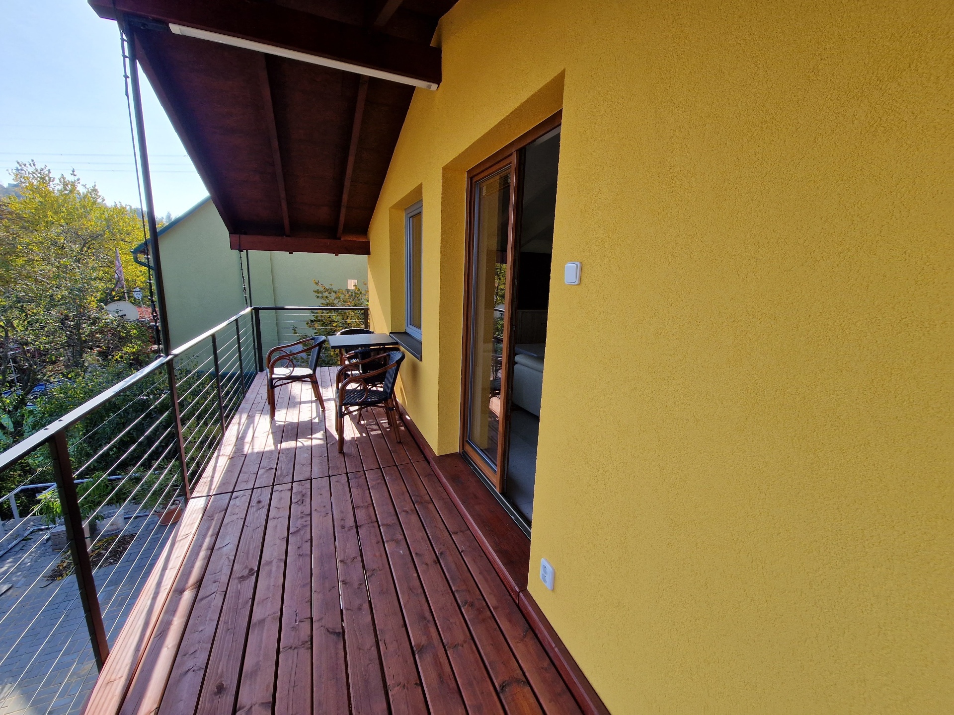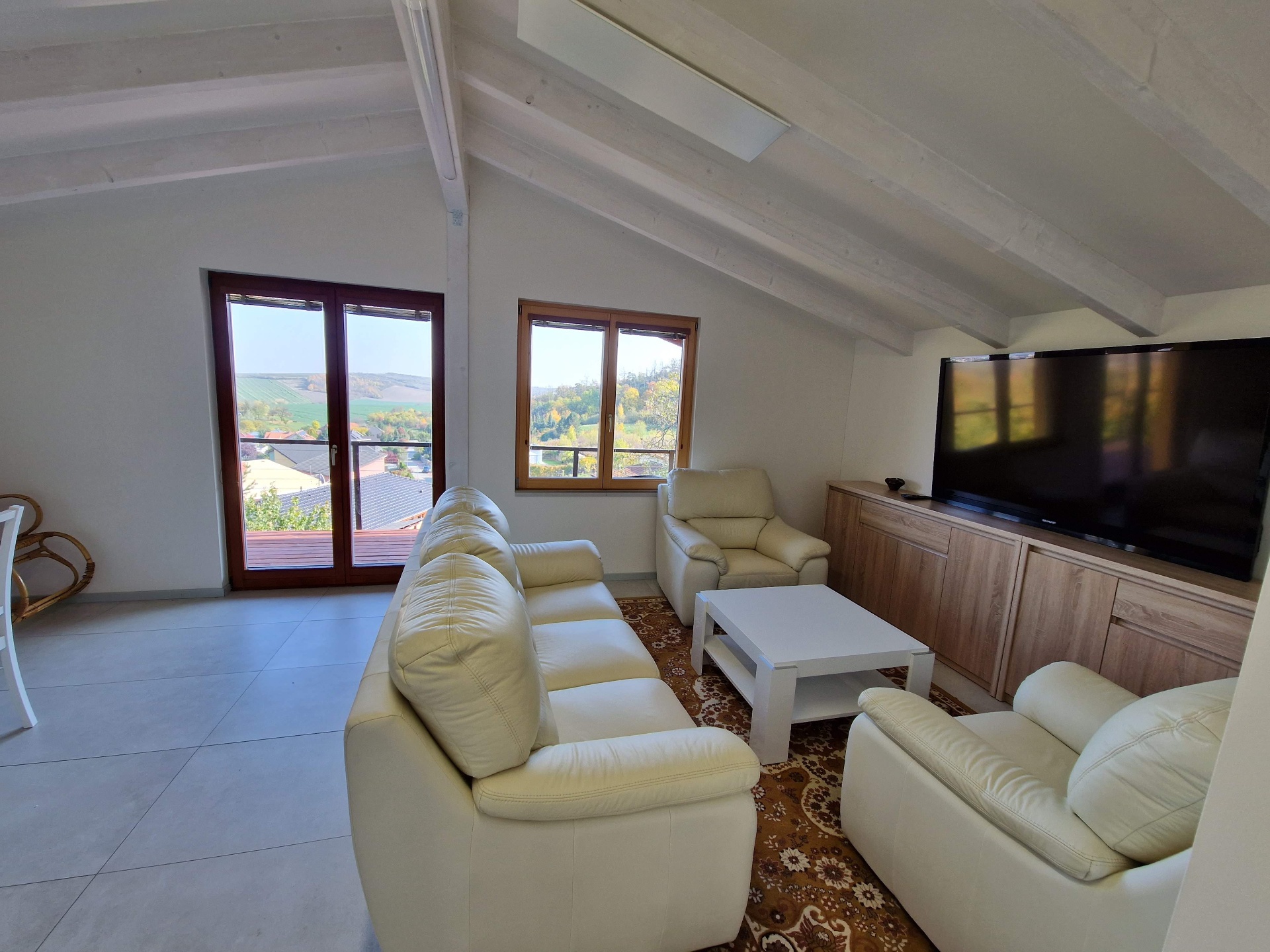 Nabízíme pronájem bytu 2+kk, ul. Padělky, Ostopovice. Byt o CP 55 m2 s terasou a pěkným výhledem do okolí. Byt je kompletně zařízený, kuchyňská linka vč. vestavěných spotřebičů (lednice, mikrovlnná trouba, trouba, varná deska), jídelní stůl a židle, kožená sedací souprava a TV, v menší ložnici jsou 2 postele. V koupelně sprchový kout, WC a bidet. Terasa s posezením (stůl a židle). Před domem je další posezení. Velmi klidná lokalita.