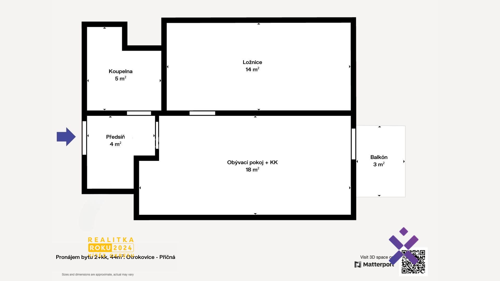 Byt je orientován na západní stranu, vybaven venkovními žaluziemi s dálkovým ovládáním. K dispozici je také sklepní kóje vhodná k uložení kol.