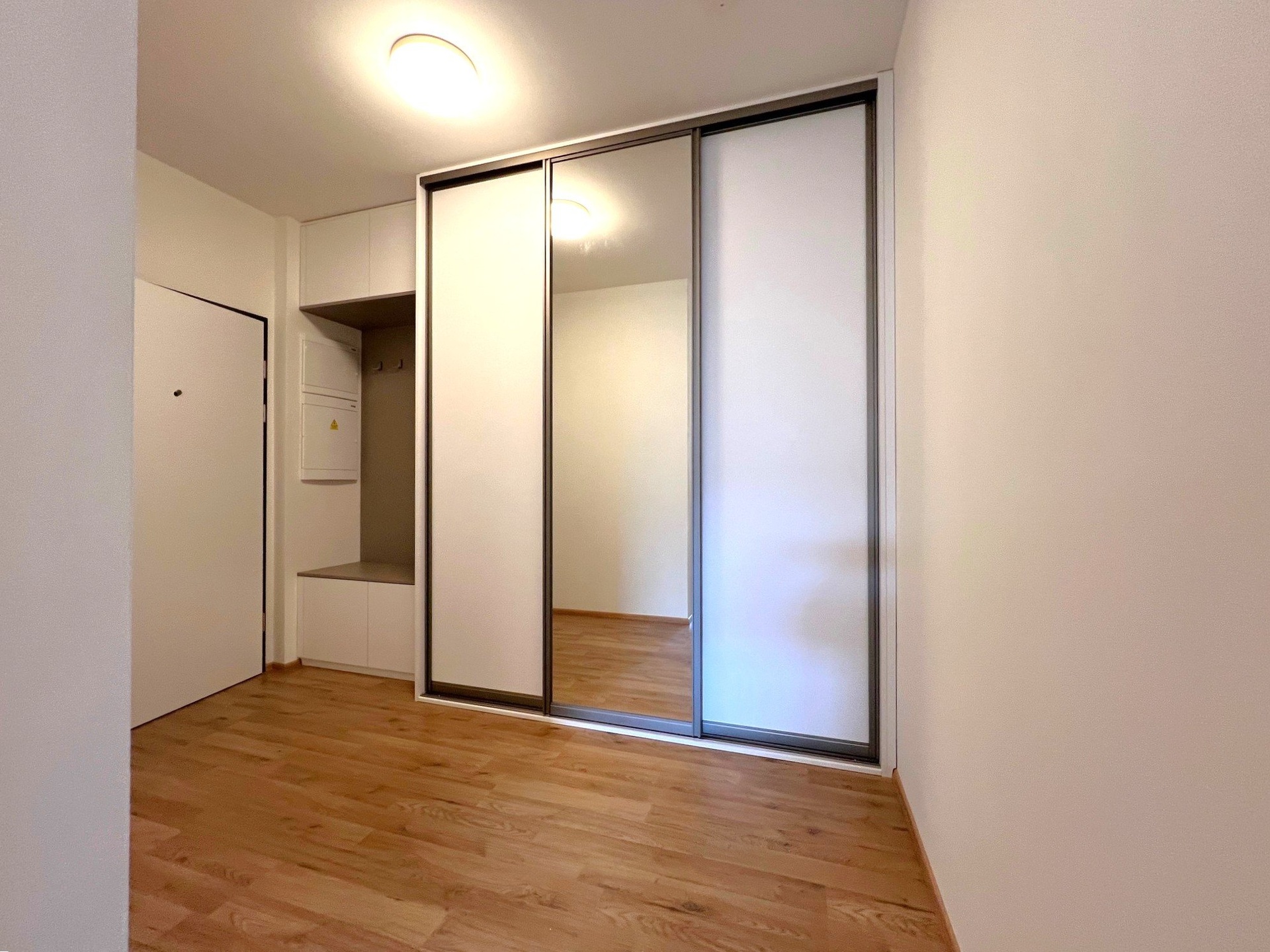 Byt o celkové ploše 58,50 m² + lodžie 8,4 m² je situován ve 2. patře a nabízí komfortní bydlení pro pár či jednotlivce. Byt disponuje prostornou chodbou s vestavnou skříní, obývacím pokojem s kuchyňským koutem, ložnicí, koupelnou s WC a komorou. Moderní kuchyňská linka je vyrobena na míru a je vybavena vestavěnými spotřebiči. K bytu náleží sklep 3,40 m² a prostorné garážové parkovací stání.
