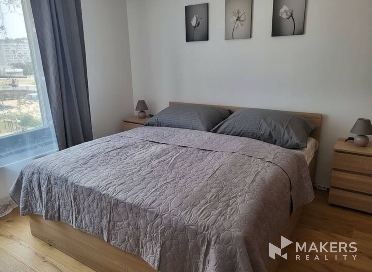 V části bytu určené k odpočinku se nachází pohodlná manželská postel doplněná o dva noční stolky s lampičkami. Interiér působí velmi klidně a harmonicky díky světlým stěnám. Vedle postele jsou umístěny prostorné vestavěné skříně, které nabízejí dostatek úložného prostoru pro oblečení a další věci. U okna je situován pracovní stůl s pohodlnou židlí – ideální pro práci, studium nebo psaní.
