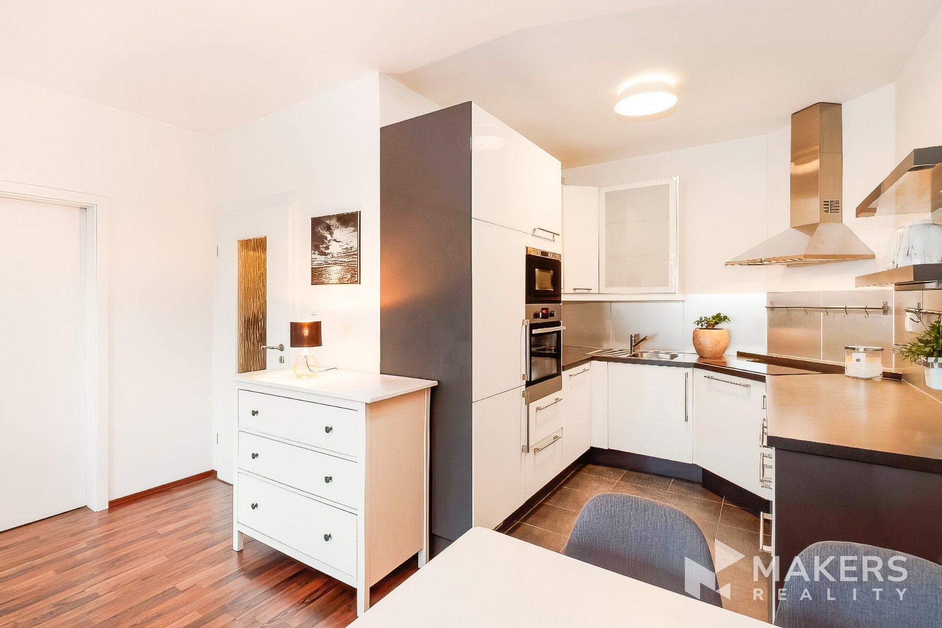 Vybavení bytu zahrnuje kompletní kuchyňskou linku se spotřebiči (včetně myčky, trouby a varné desky), pračku, postel, pohovku a další základní vybavení. Byt je částečně zařízen – konkrétní rozsah vybavení lze upravit dle dohody s pronajímatelem. Koupelna je nově zrekonstruovaná, vybavená vanou, umyvadlem a WC. Dostatek úložného prostoru zajišťuje velká vestavěná skříň na chodbě a samostatná skříň v ložnici.