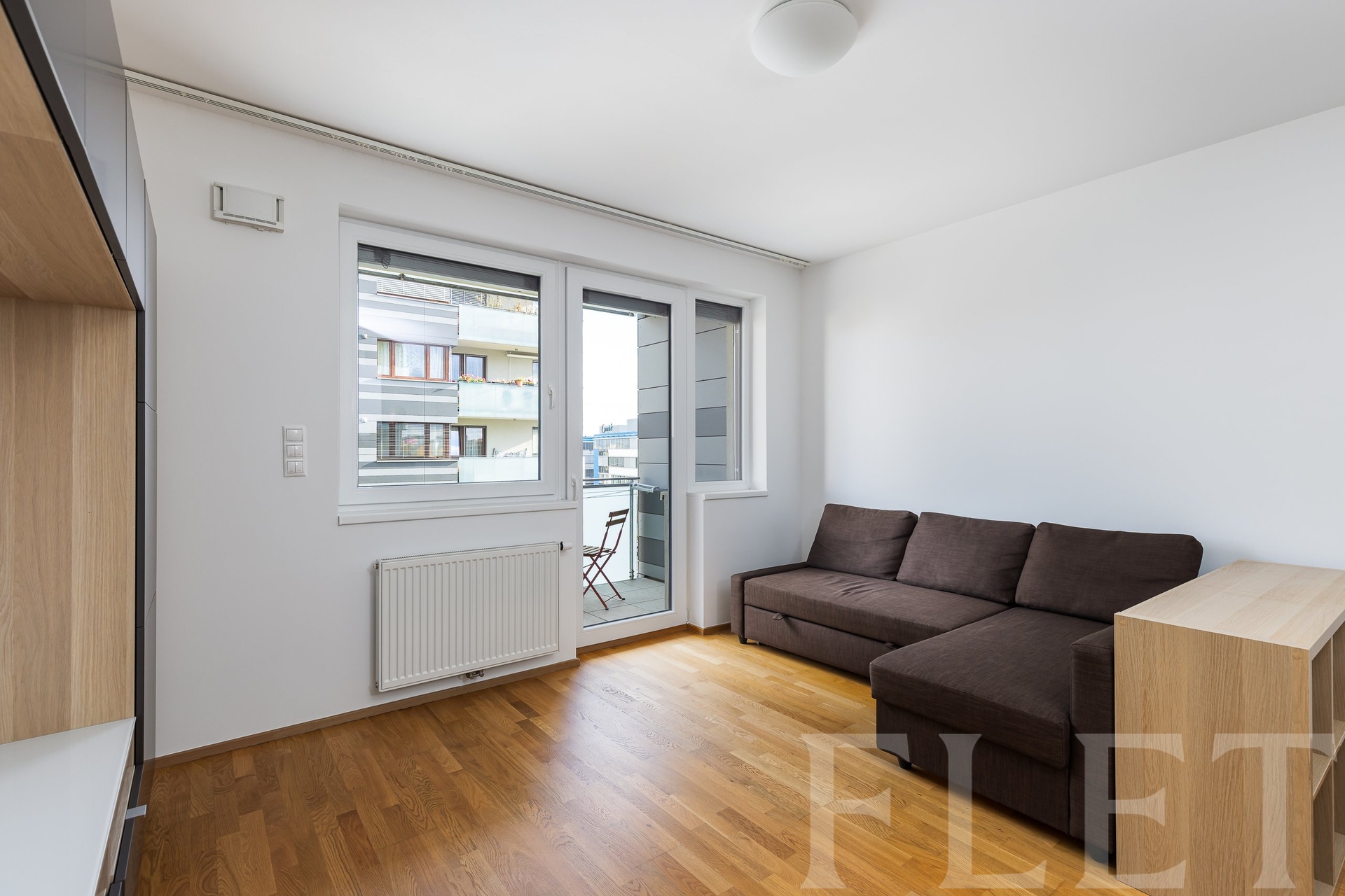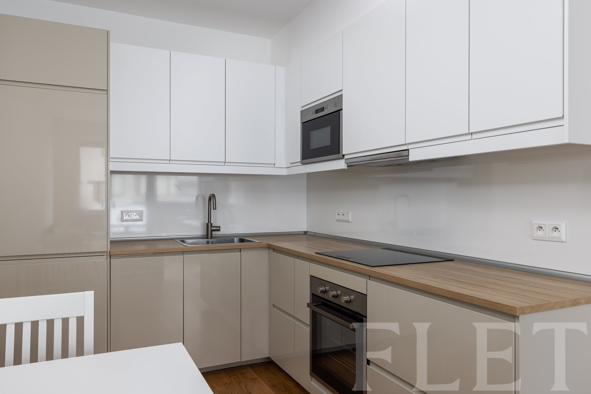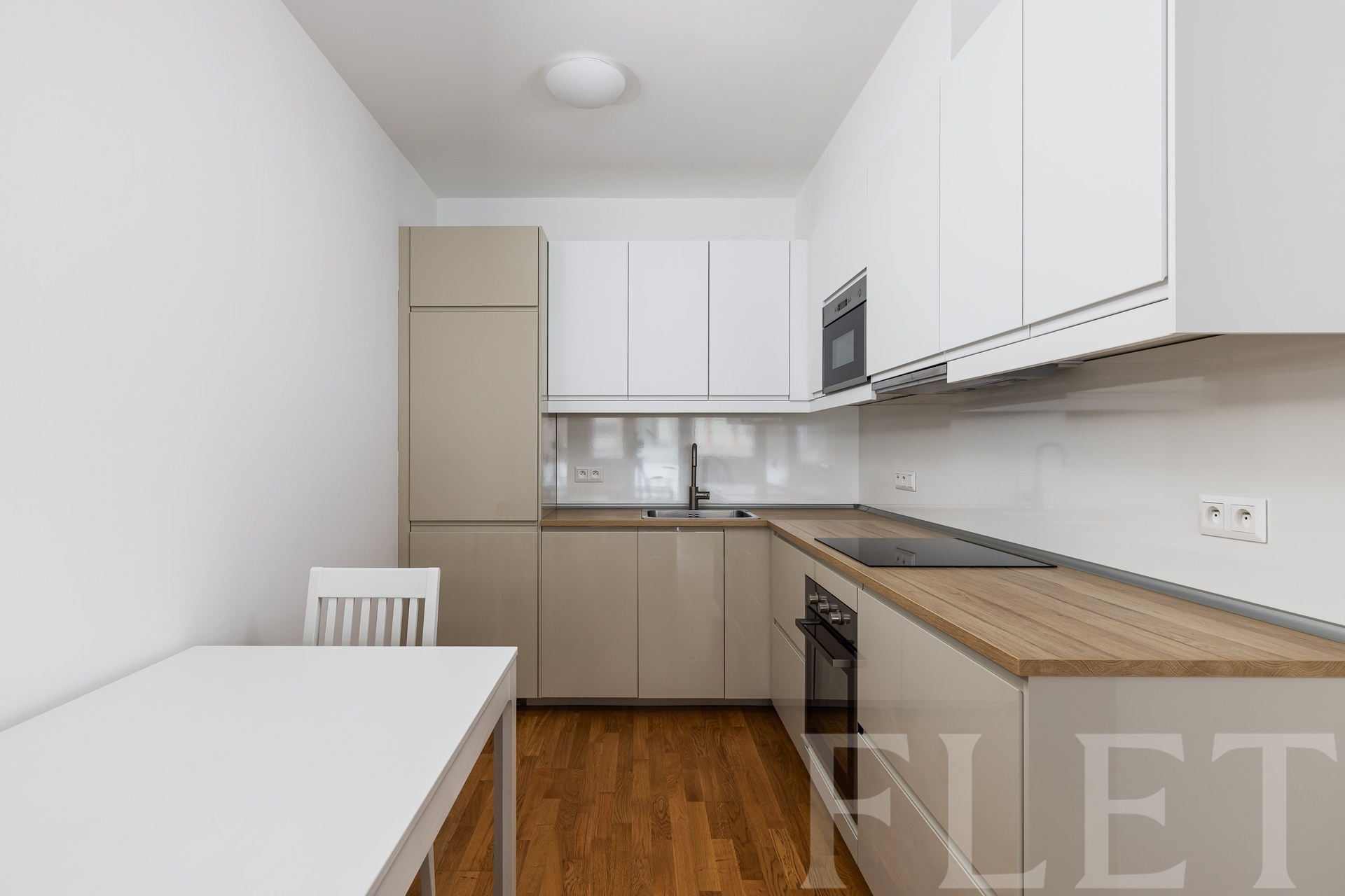 Interiér bytu zaujme prostorným obývacím pokojem s kuchyňským koutem, vybaveným moderní linkou se spotřebiči a dostatkem pracovního i úložného prostoru. Byt je kompletně zařízen vkusným nábytkem a připraven k okamžitému nastěhování – stačí si přinést osobní věci a můžete bydlet. Ložnice působí útulně a klidně, obývací část nabízí pohodlné posezení i prostor pro odpočinek, a z balkonu s venkovním sezením si můžete vychutnat výhled do okolní zeleně. Koupelna je elegantní a prakticky řešená – s vanou, umyvadlem, toaletou a pračkou.
