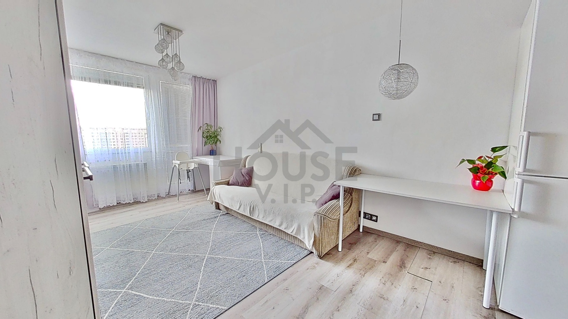Nabízíme k pronajmu byt 2+kk, 45,87 m², včetně komory, Praha 8 - Kobylisy. Byt se nachází ve 12 N.P. ze 13.N.P. panelového domu s výtahem. Nemovitost se nachází, pouze 7 min. od metra Ládví, s krásným výhledem na celou Prahu.