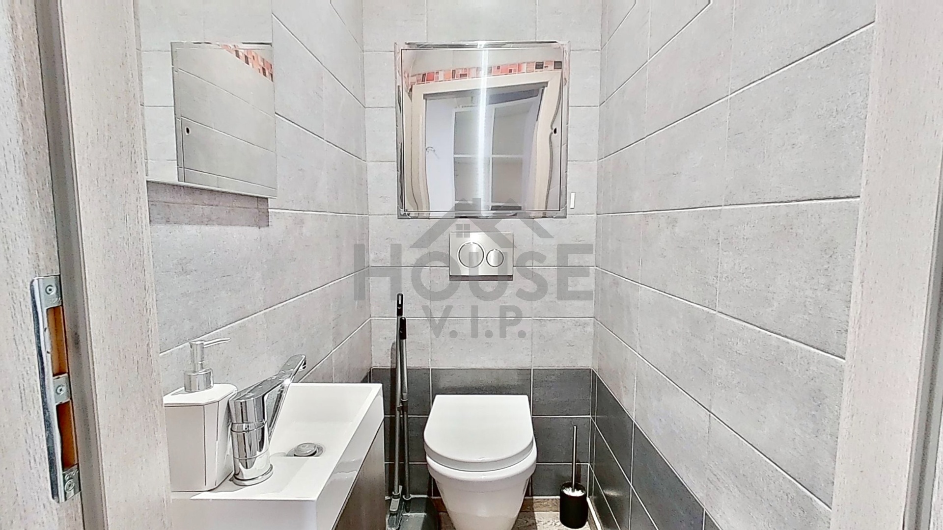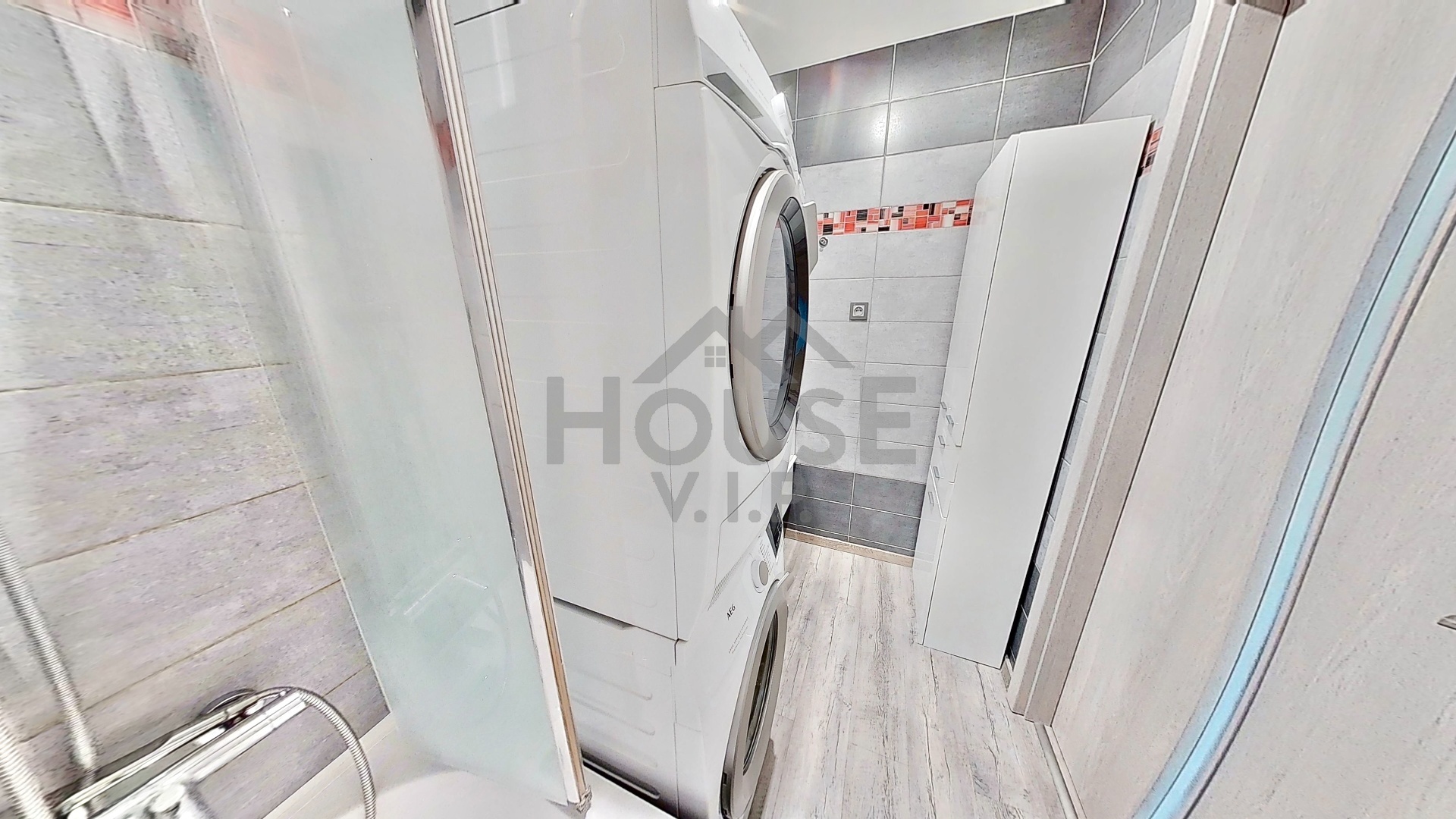Jednotka prošla kompletní rekonstrukce, na konci roku 2018. Kuchyňská linka je vybavena indukční deskou, troubou, mikrovlnou troubou a myčkou. Byt se nabízí s vybavením: obývací stěna, pohovka, lednice, pračka, sušička, skříně atd. V obývacím pokoji, se nachází velké francouzské okno, na kterém je umístěna venkovní jednotka klimatizace.