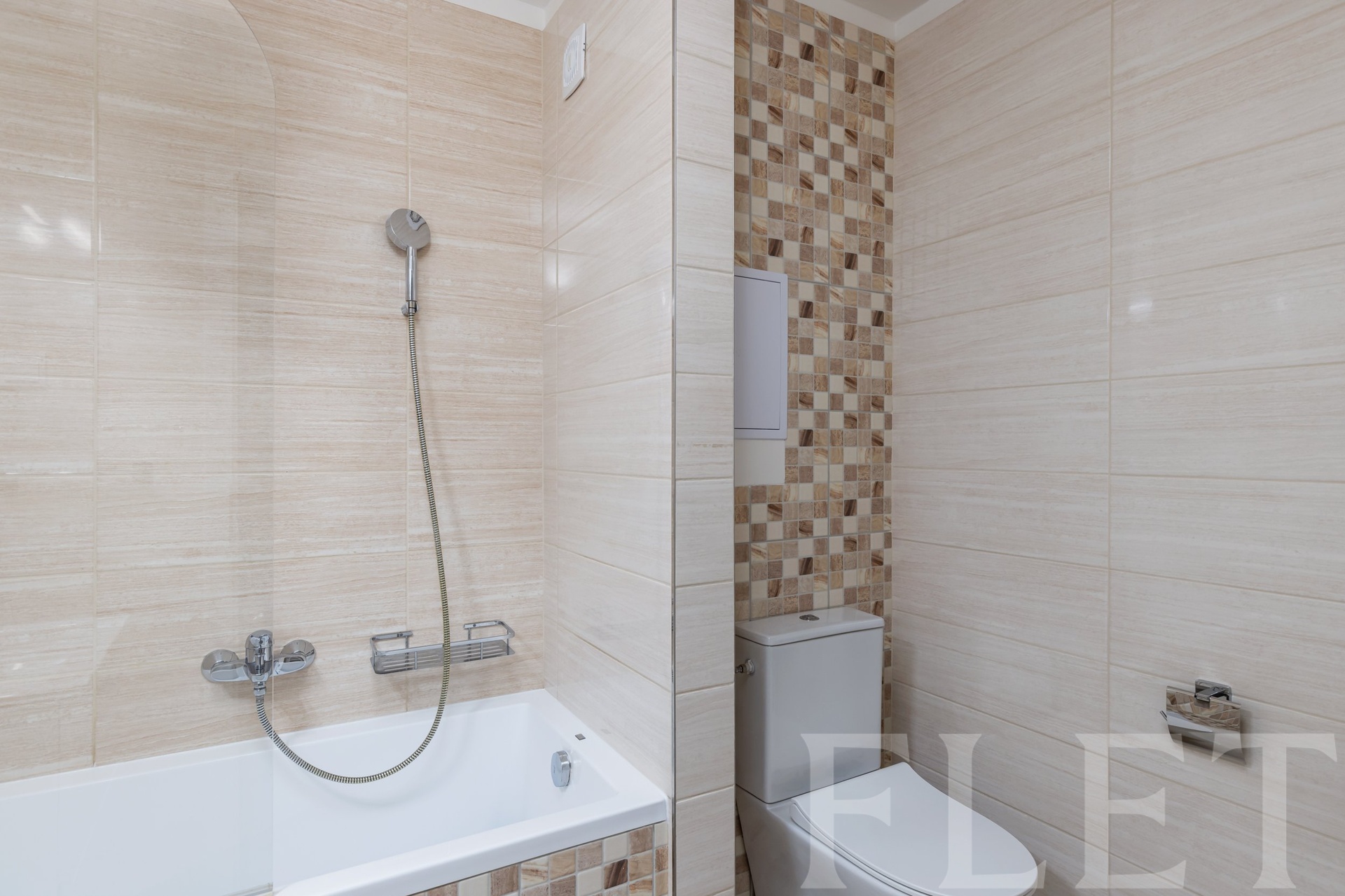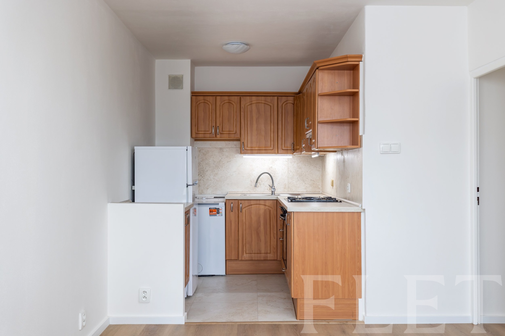 Součástí bytu je obývací pokoj s kuchyňským koutem, který je vybaven lednicí a sporákem. Z této místnosti je přímý vstup na balkón. V kuchyňské části je zároveň umístěna pračka. Koupelna je vybavena vanou a toaletou. K bytu náleží také sklepní kóje, která poskytuje další úložný prostor.
