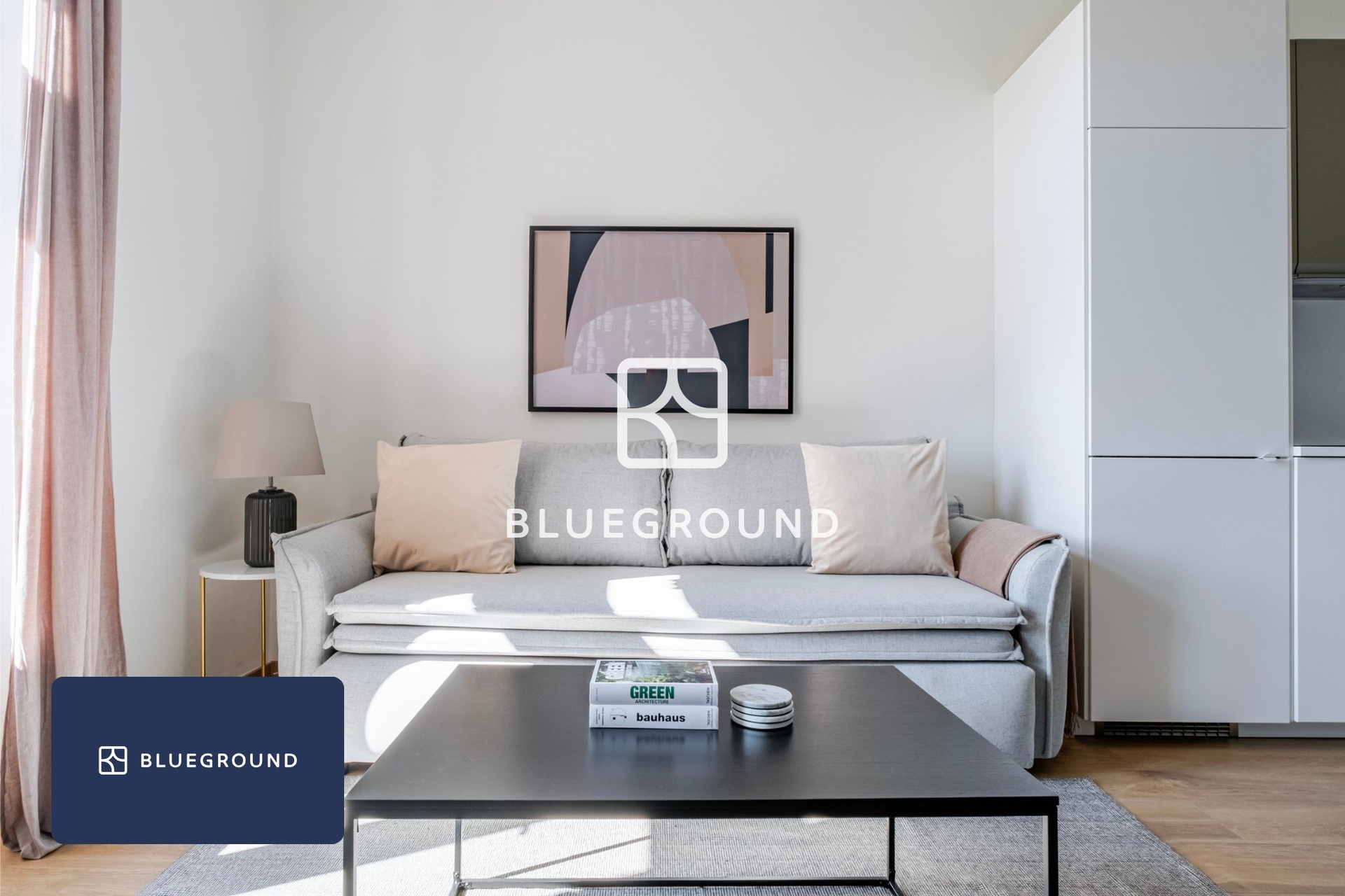 Blueground nabízí plně zařízený byt 2+kk k pronájmu v Praze 10, dostupný pro pobyty od jednoho měsíce.
