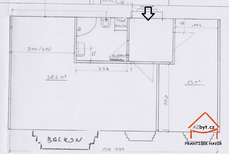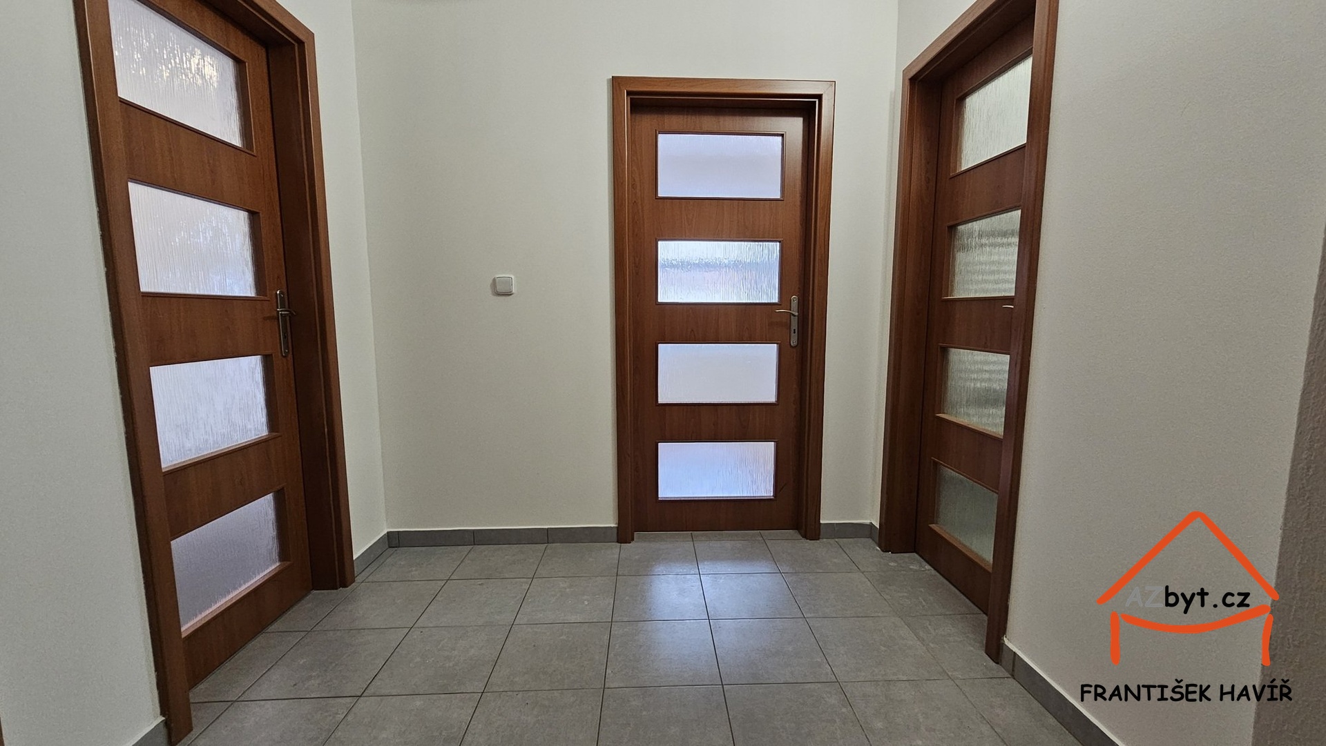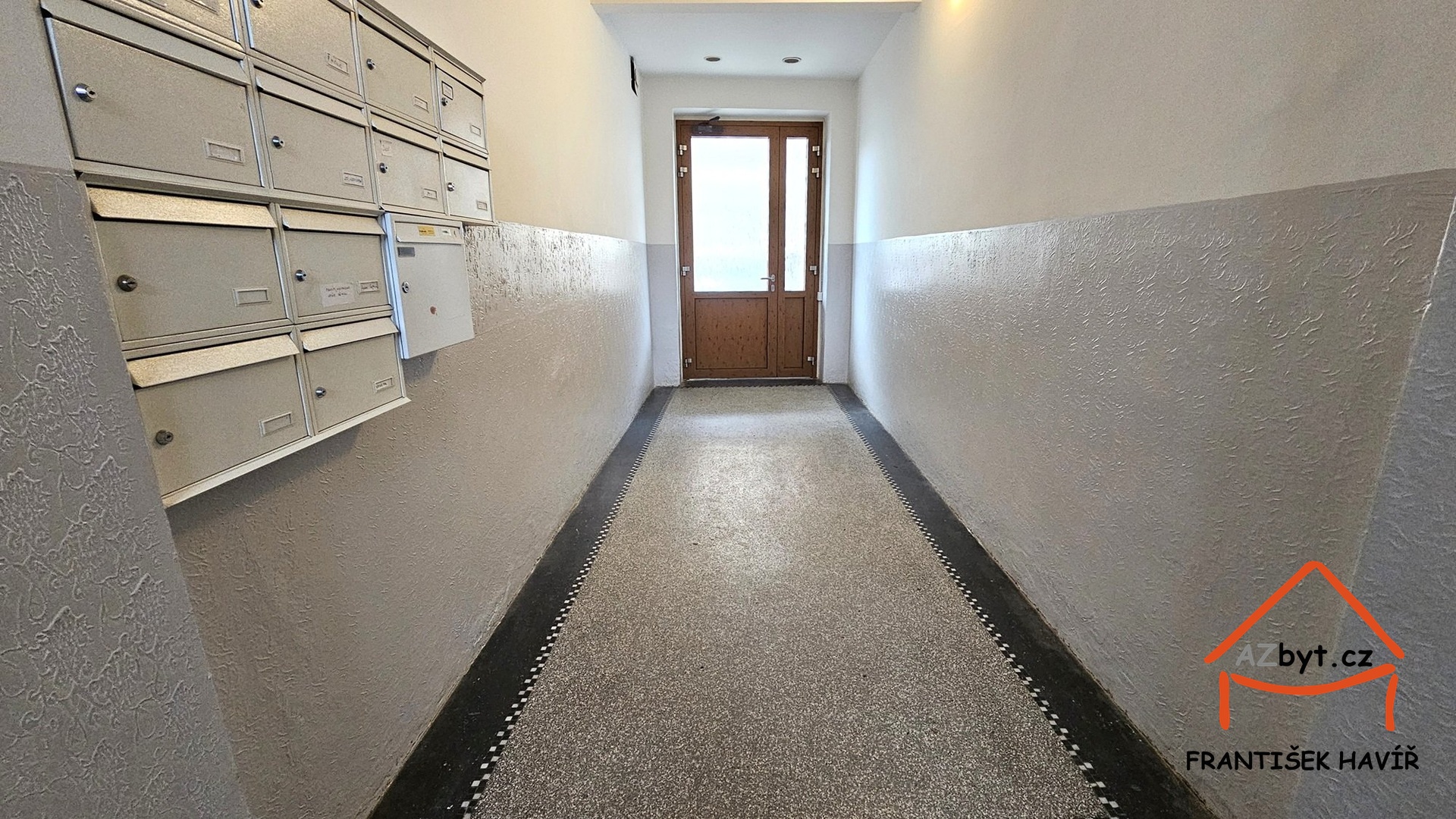Z předsíně se vstupuje do všech neprůchozích místností bytu – prostorného obývacího pokoje s kuchyňským koutem (cca 29 m2) a vstupem na balkon, ložnice s vestavěnou skříní a koupelny se sprchovým koutem a toaletou. Dispozice je znázorněna na přiloženém plánku.