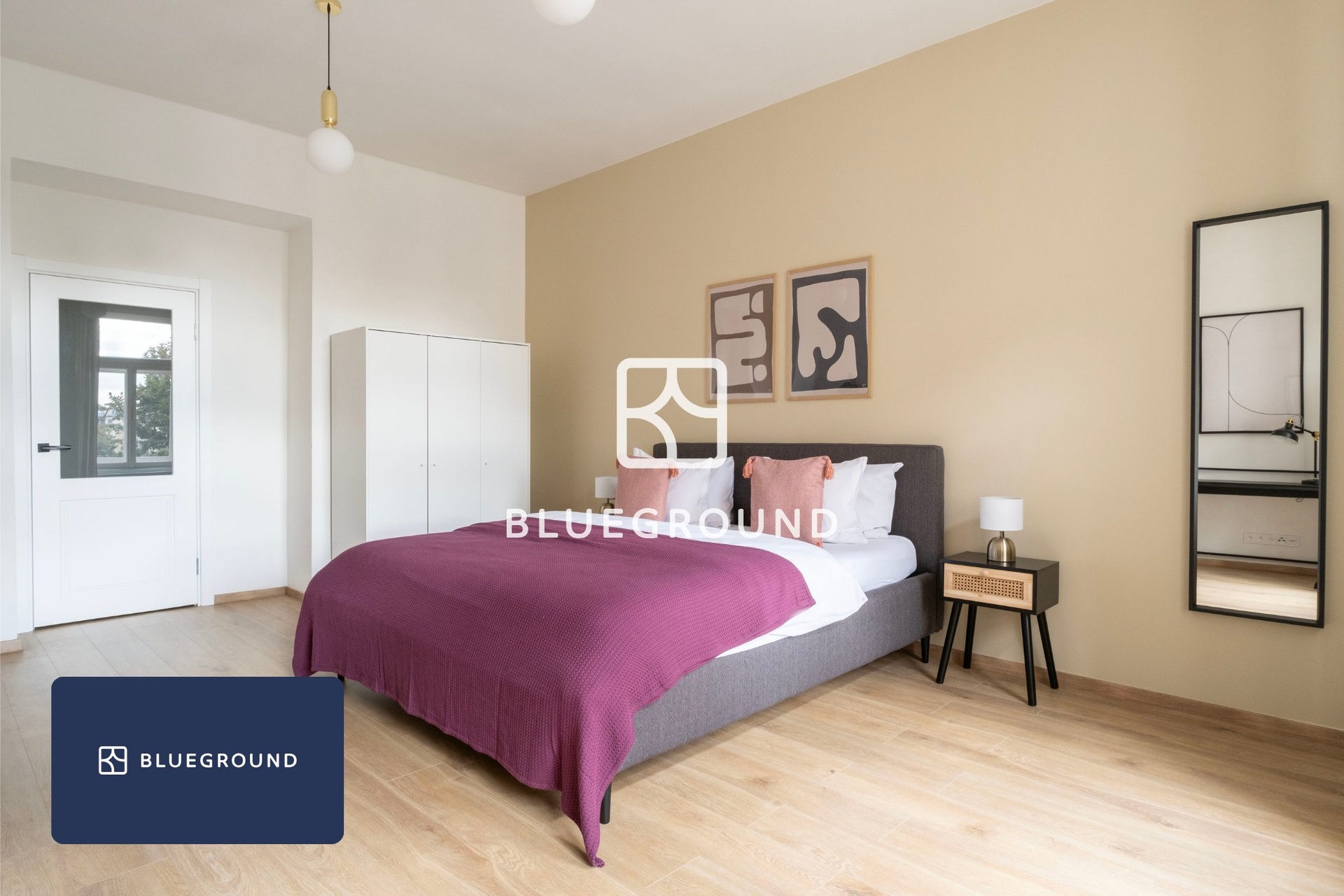 Blueground nabízí plně zařízený byt 2+kk k pronájmu v Praze 10, dostupný pro pobyty od jednoho měsíce.