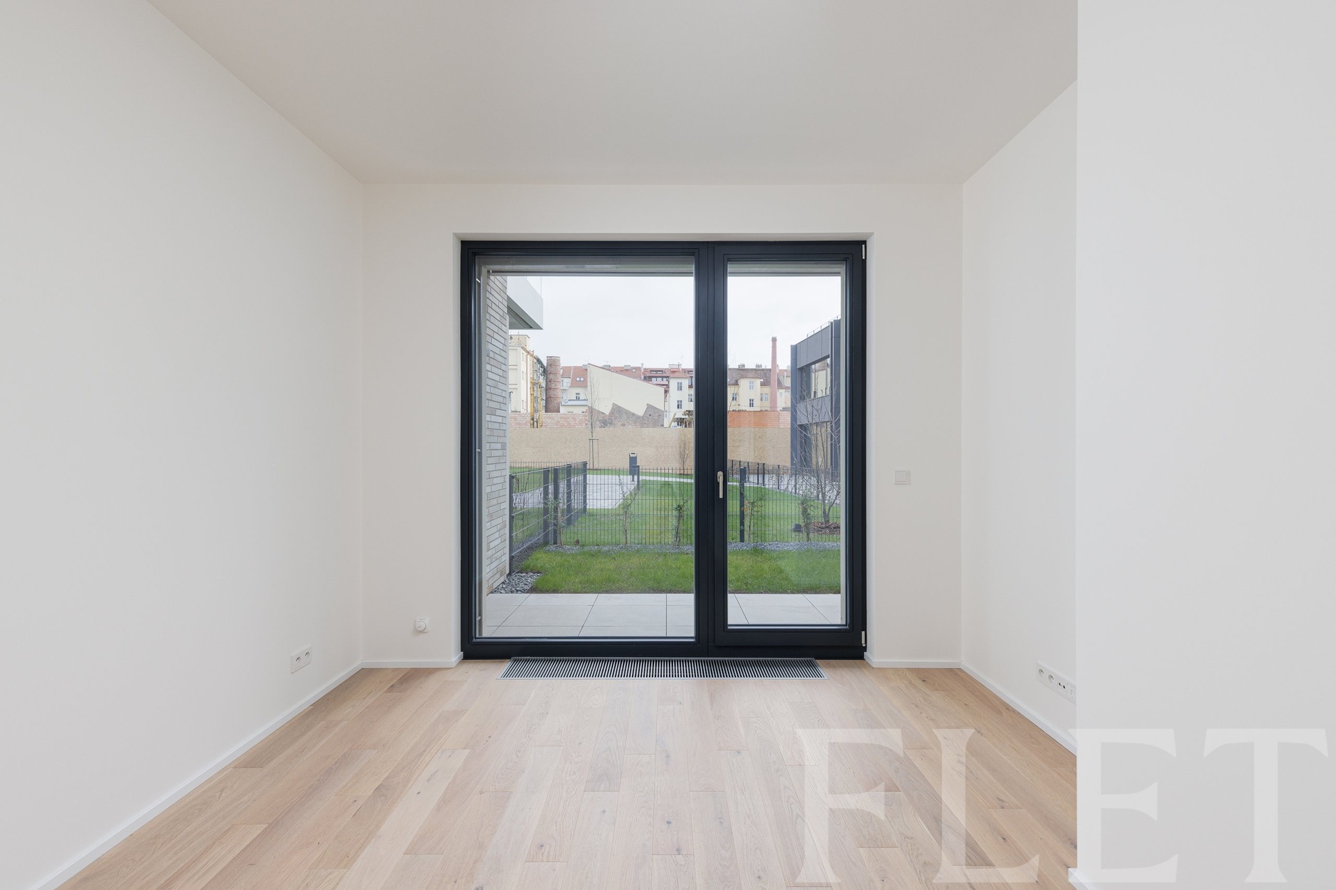 Při vstupu do bytu vás uvítá prostorná předsíň s vestavěnou skříní, ve které je připraven přívod pro pračku. V hlavní místnosti je umístěn kompletně vybavený kuchyňský kout, kde najdete troubu, varnou desku, digestoř, myčku nádobí a lednici s mrazákem. Druhý neprůchozí pokoj si můžete zařídit například jako ložnici. Z obou pokojů se dostanete na vlastní prostornou zahrádku v klidném uzavřeném vnitrobloku zajišťující veškerý komfort a bezpečí. Pro maximální soukromí byly na velkoformátových oknech s izolačními trojskly instalovány venkovní žaluzie. V moderní koupelně se sprchovým koutem je toaleta. K bytu náleží také sklep a jedno garážové stání.