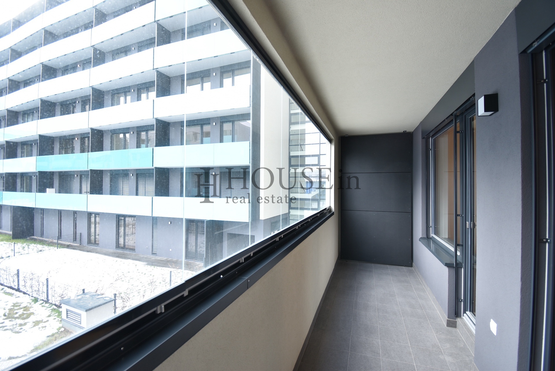 Z obývacího pokoje i ložnice je vstup na velkou zasklenou lodžii, která se táhne přes obě místnosti. Součástí pronájmu je také sklep v 1. podzemním podlaží a garážové stání pro osobní automobil.