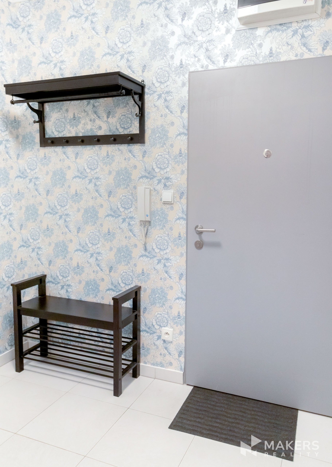 Hlavní obytný prostor tvoří obývací pokoj propojený s kuchyňským koutem, který je vybaven varnou deskou s troubou a digestoří, mikrovlnnou troubou a lednicí s mrazákem. Obývací část je zařízena pohovkou a televizí a navazuje na balkon o ploše 5 m². Ložnice disponuje manželskou postelí a šatní skříní. Koupelna je vybavena vanou, toaletou a pračkou. V předsíni se nachází komora o velikosti 2,5 m², která poskytuje dostatek úložného prostoru.