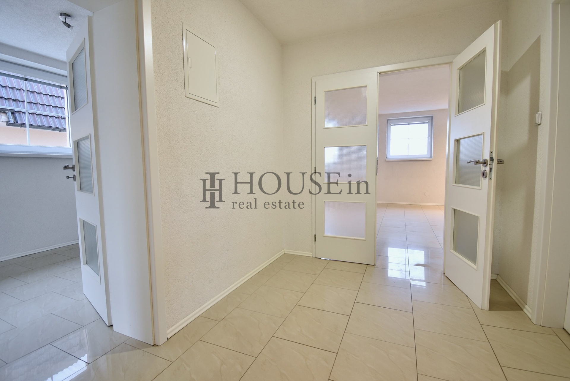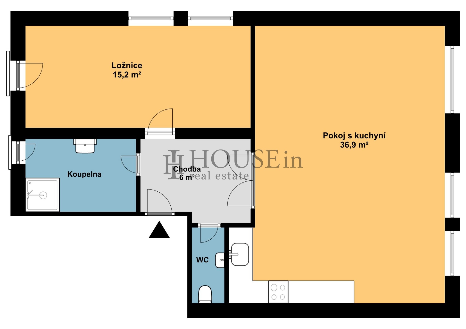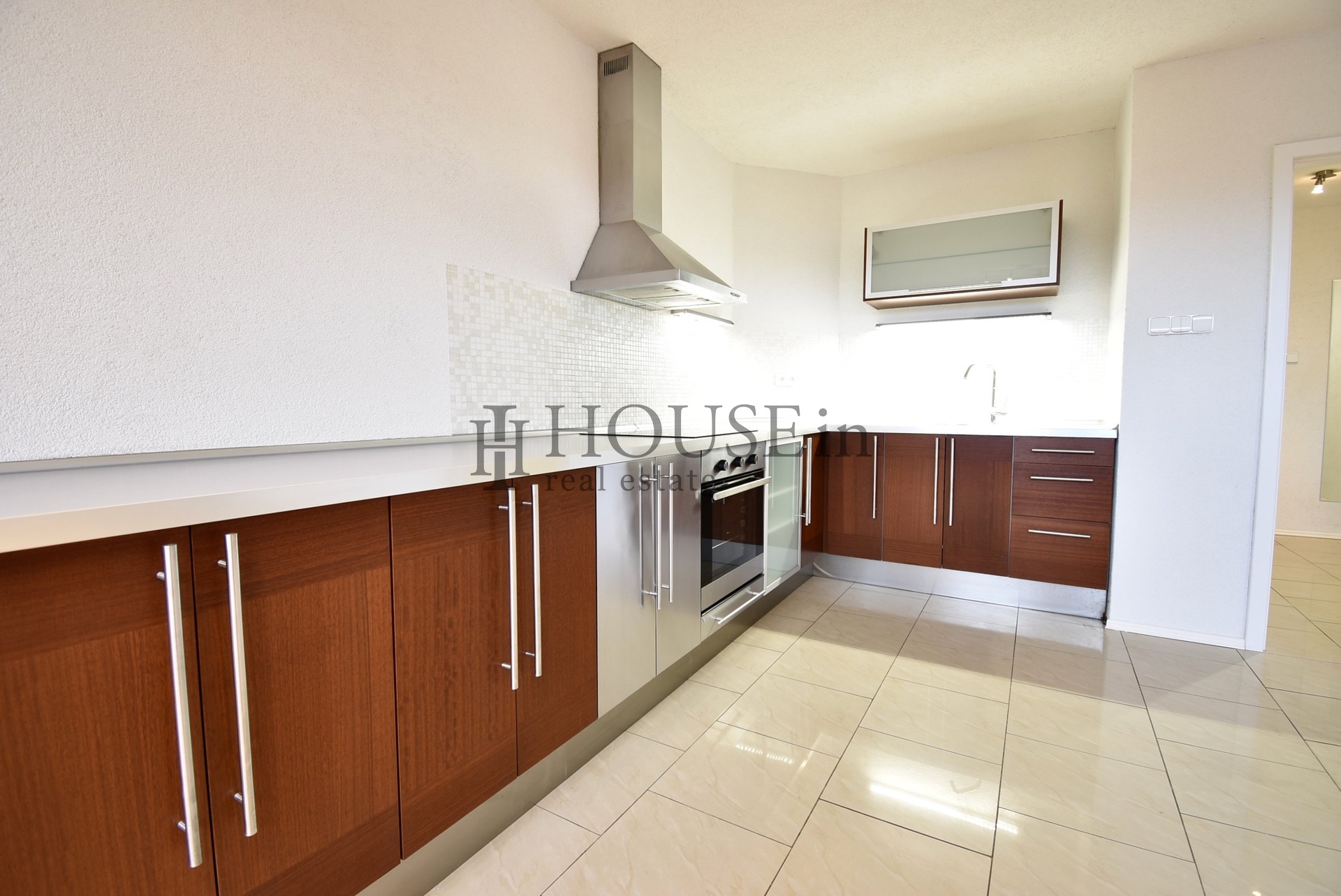 Byt disponuje praktickou a vzdušnou dispozicí: předsíň, koupelna se sprchovým koutem, samostatné WC, ložnice s francouzským oknem a prostorný obytný pokoj s kuchyňským koutem. Kuchyňská linka je vybavena sklokeramickou varnou deskou, elektrickou troubou a digestoří. Lednice a pračka nejsou součástí vybavení. Byt se pronajímá nezařízený.