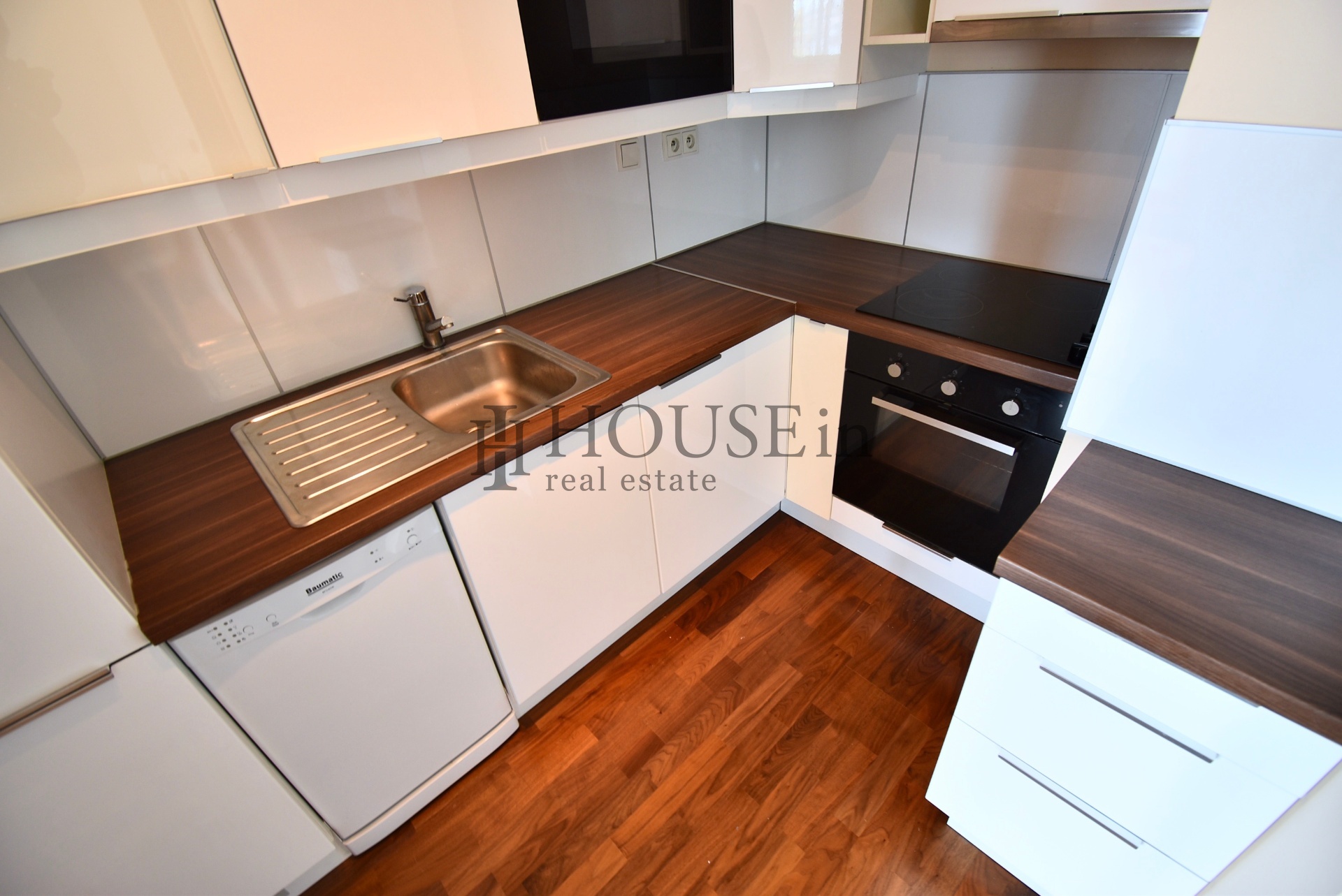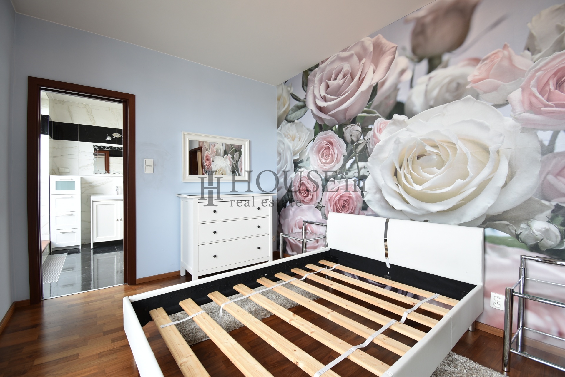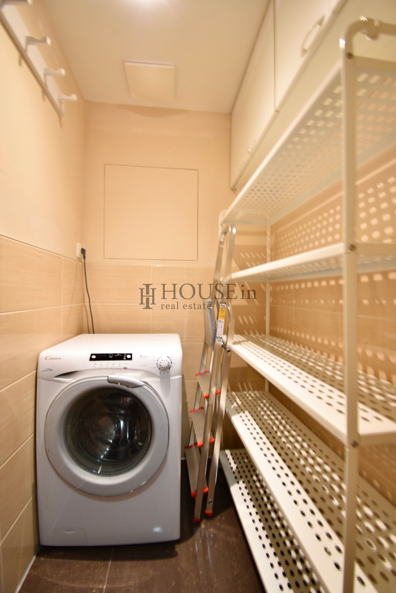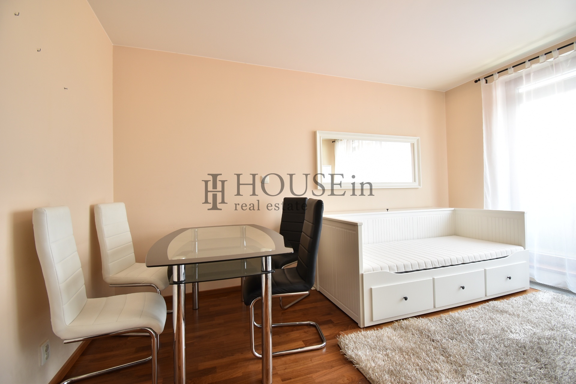 Byt nabízí prakticky řešenou vstupní předsíň s úložným prostorem a pračkou, komoru, prostorný obývací pokoj se sedací soupravou, jídelním stolem se židlemi a obývací stěnou. Kuchyňský kout je oddělený a plně vybavený spotřebiči, mezi které patří myčka, sklokeramická varná deska, elektrická trouba, digestoř a lednice s mrazákem. Ložnice je zařízena velkou šatní skříní a dvoulůžkovou postelí bez matrace. Z obývací části je přímý vstup na slunnou terasu s krásným výhledem na Vyšehrad a panorama Prahy.