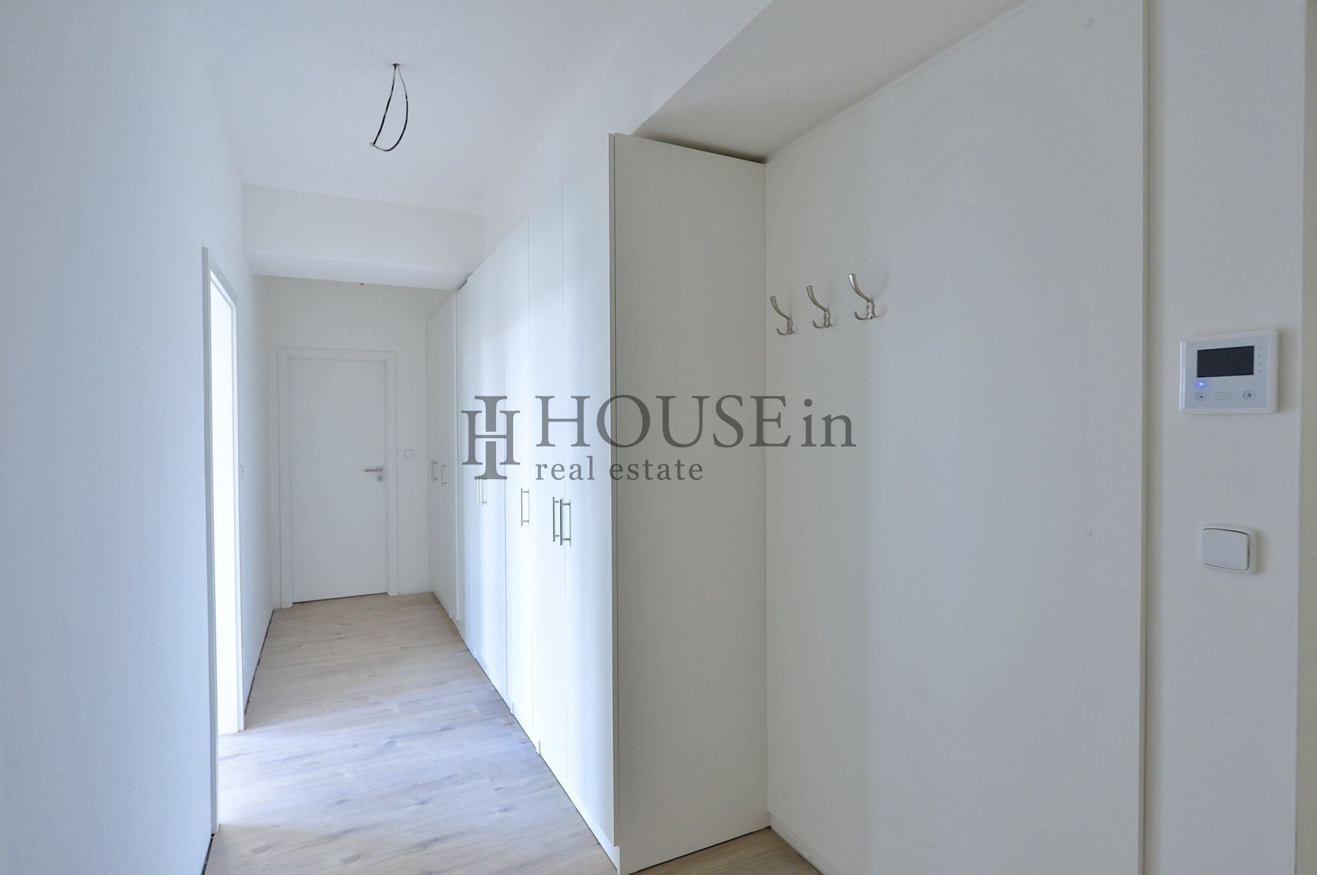 Byt je vybaven kuchyňskou linkou s elektrickou sklokeramickou varnou deskou, myčkou nádobí, horkovzdušnou troubou, mikrovlnnou troubou, lednicí s mrazákem a digestoří. V předsíni je k dispozici vestavěná šatní skříň. Samozřejmostí jsou bezpečnostní dveře, protipožární systém, okna s trojskly a elektricky ovládanými venkovními roletami, které zajistí maximální soukromí i dokonalé zatemnění. Komfort bydlení dále zvyšuje nastavitelné vytápění a podlahové vytápění v koupelně. Pračku si nájemce pořizuje na vlastní náklady. Dům disponuje úsporným centrálním vytápěním a centrálním ohřevem vody.