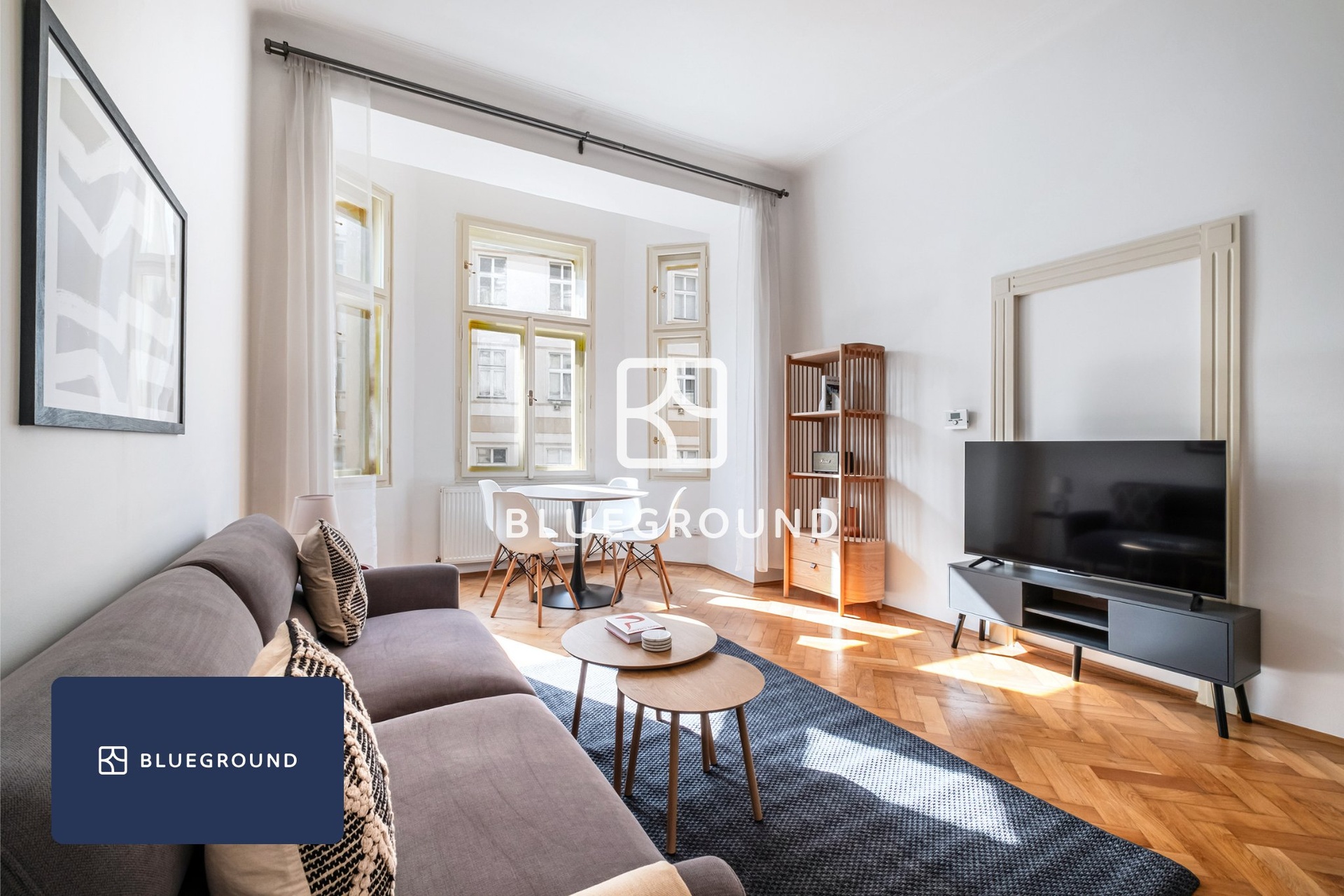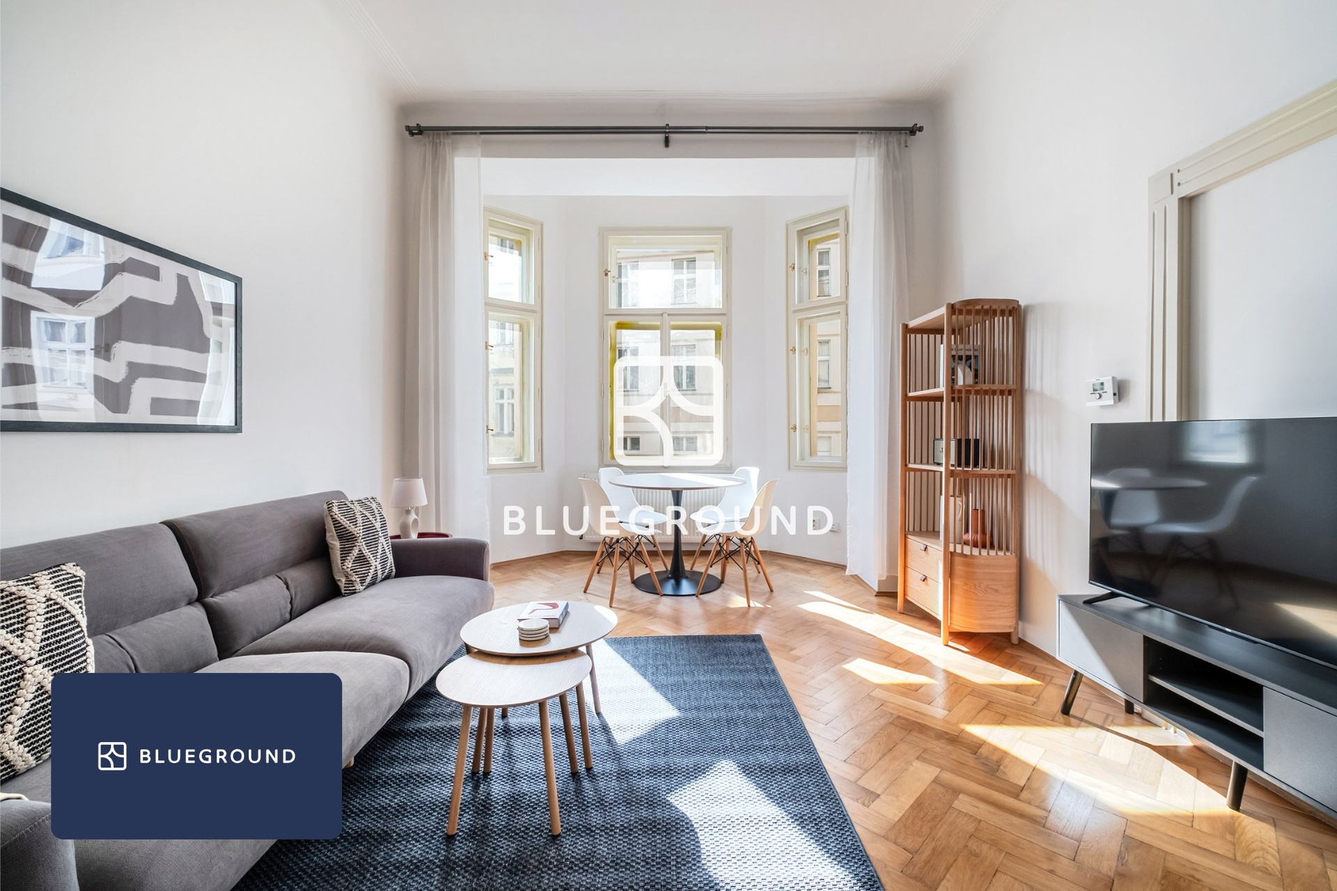 Hledáte flexibilní bydlení? Blueground nabízí plně zařízené a vybavené apartmány s možností pronájmu již od 1 měsíce. Tento slunný byt 2+kk o velikosti 49 m² se nachází v atraktivní lokalitě Nové Město, Praha 2, pouhých 5 minut chůze od oblíbené Náplavky. Byt prošel nedávnou rekonstrukcí a nabízí moderní a komfortní bydlení v samém srdci Prahy s výbornou dostupností všech služeb, restaurací a kulturního života.
