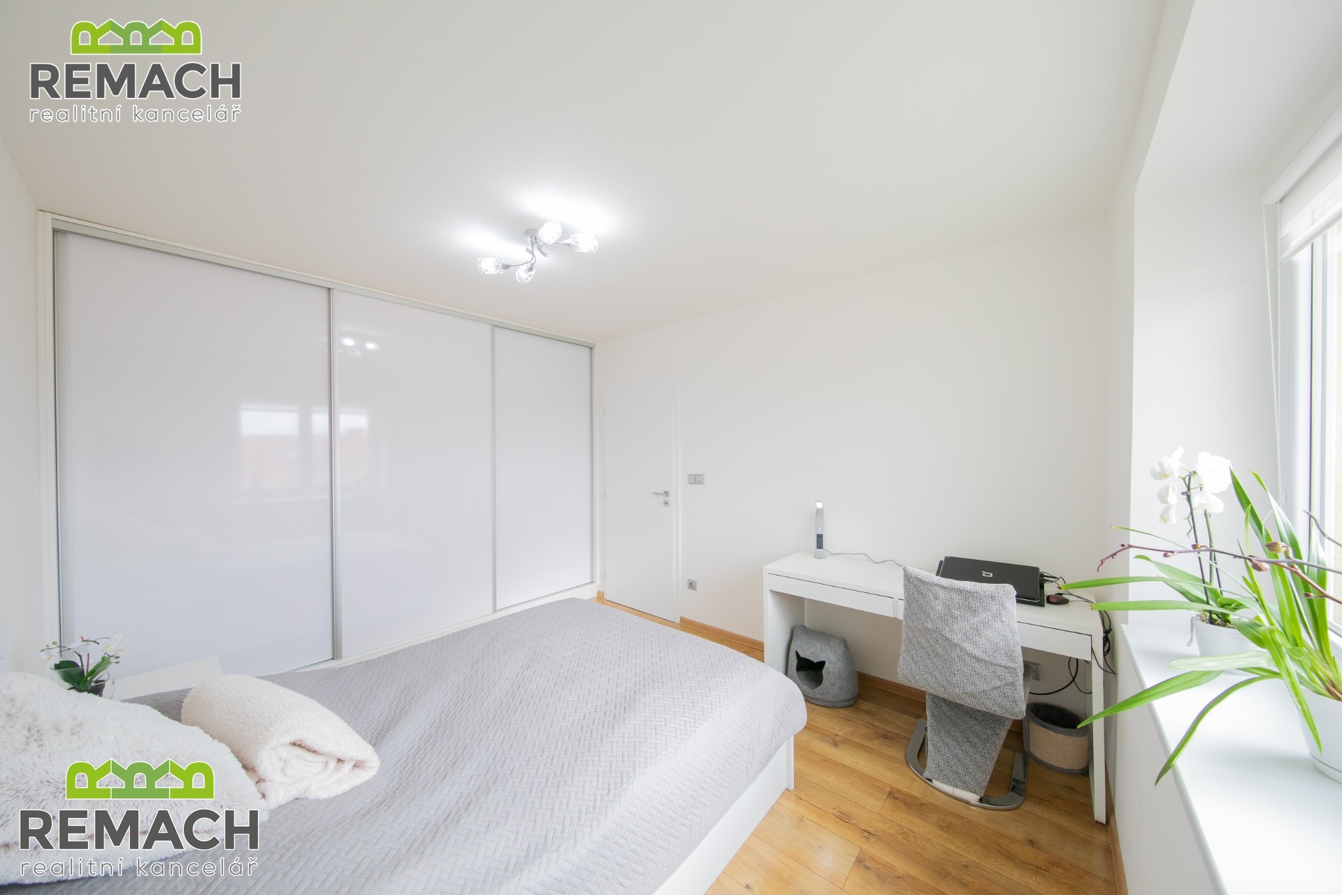 Z obývacího pokoje je přístup na prostornou lodžii, dále vstup do ložnice, kde se nachází manželská postel a obrovská vestavná skříň, pracovní prostor.