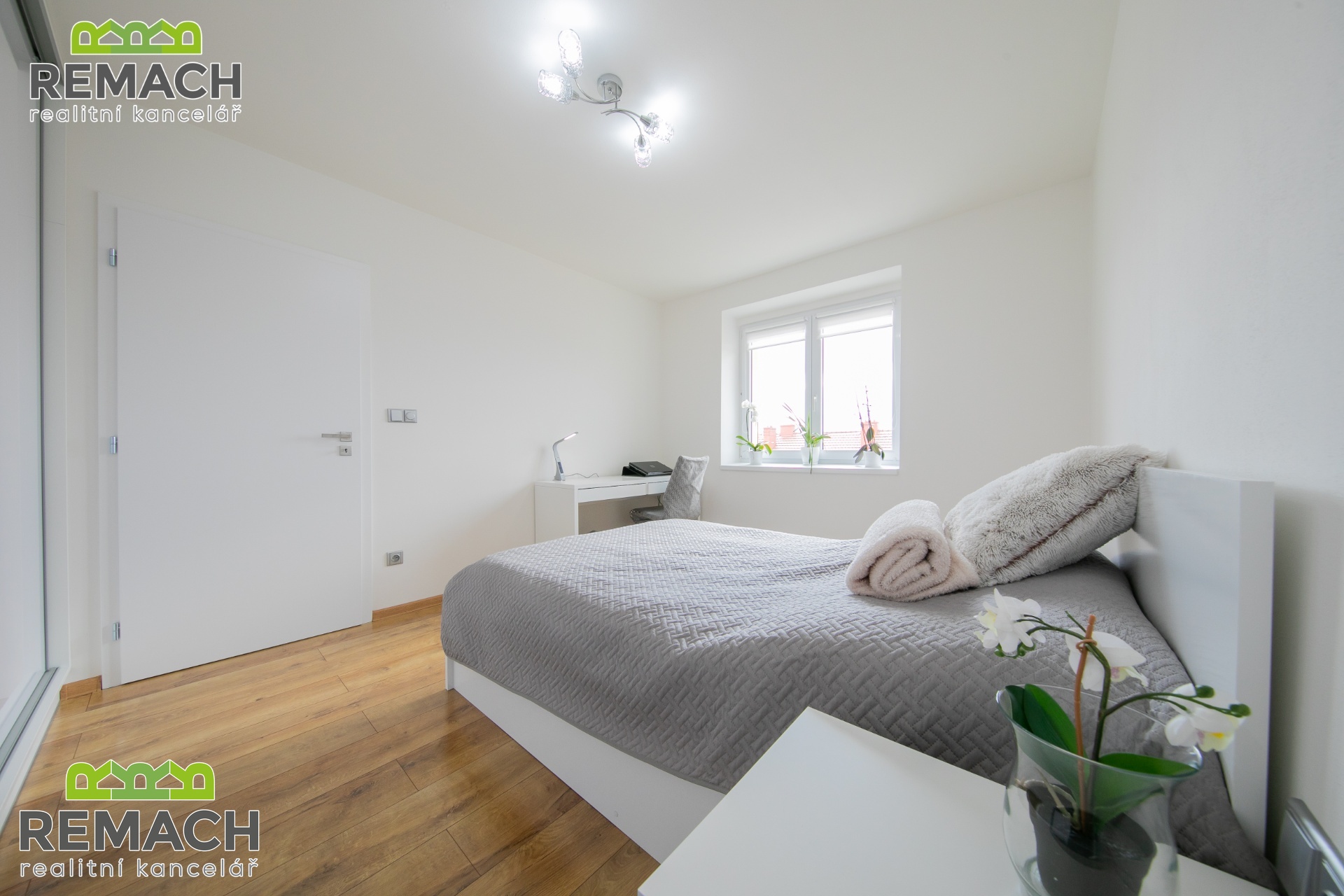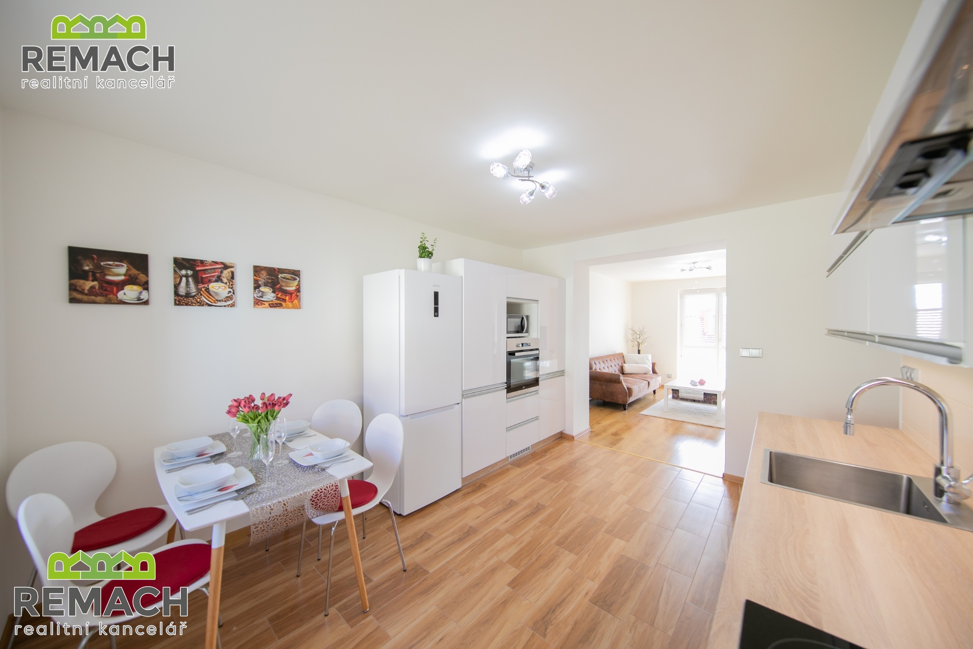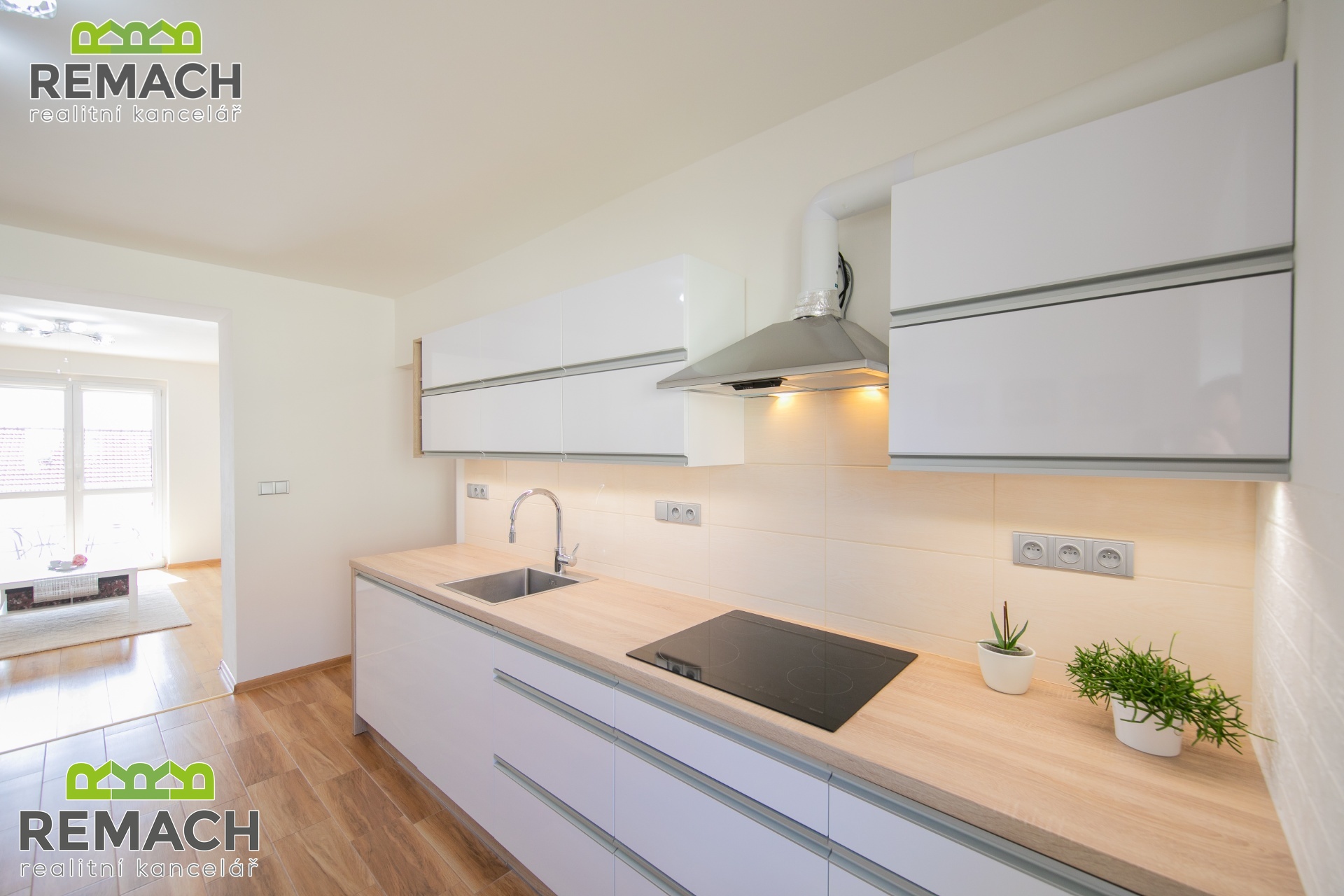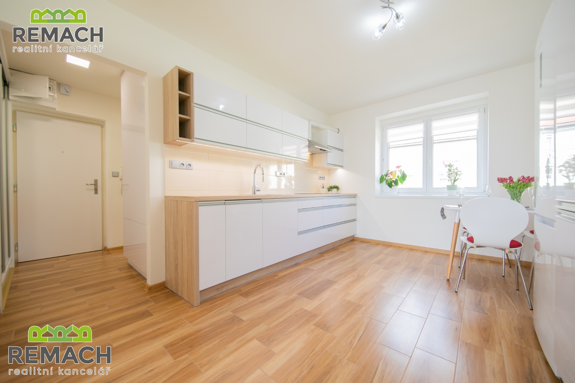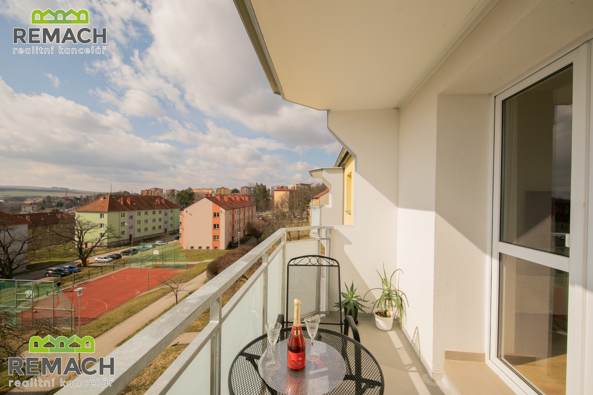 Zrekonstruovaný cihlový byt o dispozici 2+kk o ploše 58 m2, nacházející se v posledním patře s nádherným výhledem do okolí. K bytu náleží prostorná lodžie a tři sklepy. V bytě jsou kompletně nové rozvody vody a odpadu v plastu, elektřina v mědi, elektrické podlahové vytápění v celém bytě, teplou vodu zajišťuje elektrický bojler, případně je zavedena i plynová přípojka.